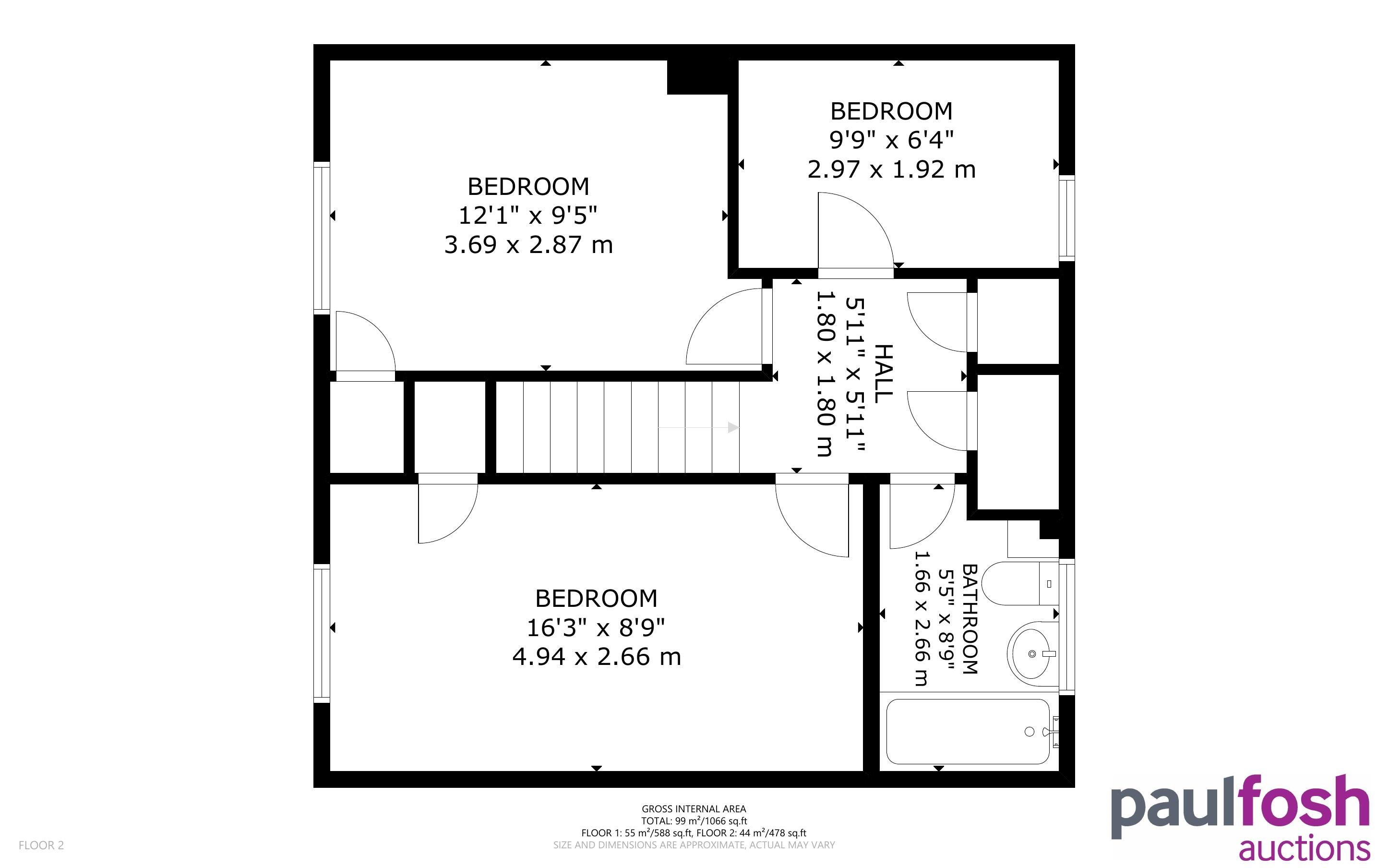 First Floor: 3 bedrooms, bathroom