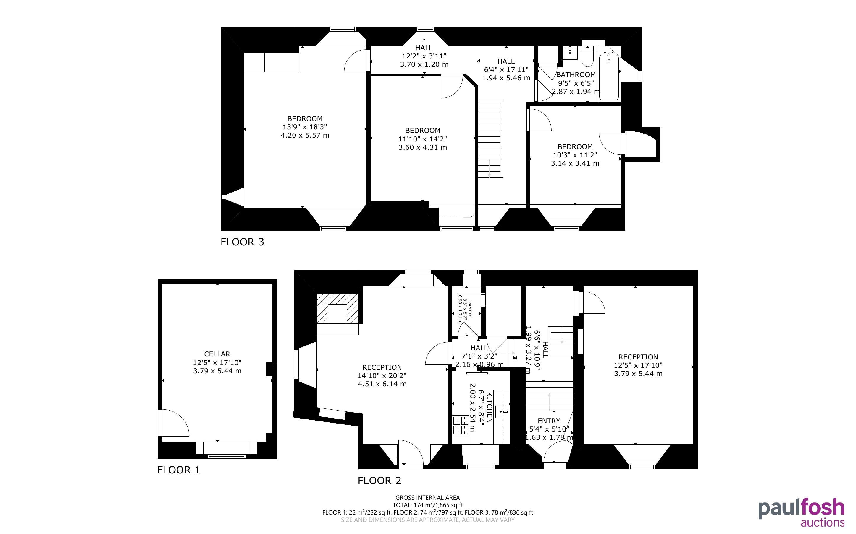 Ground Floor: Two reception rooms, kitchen, pantry, cloak cupboard, access to cellar