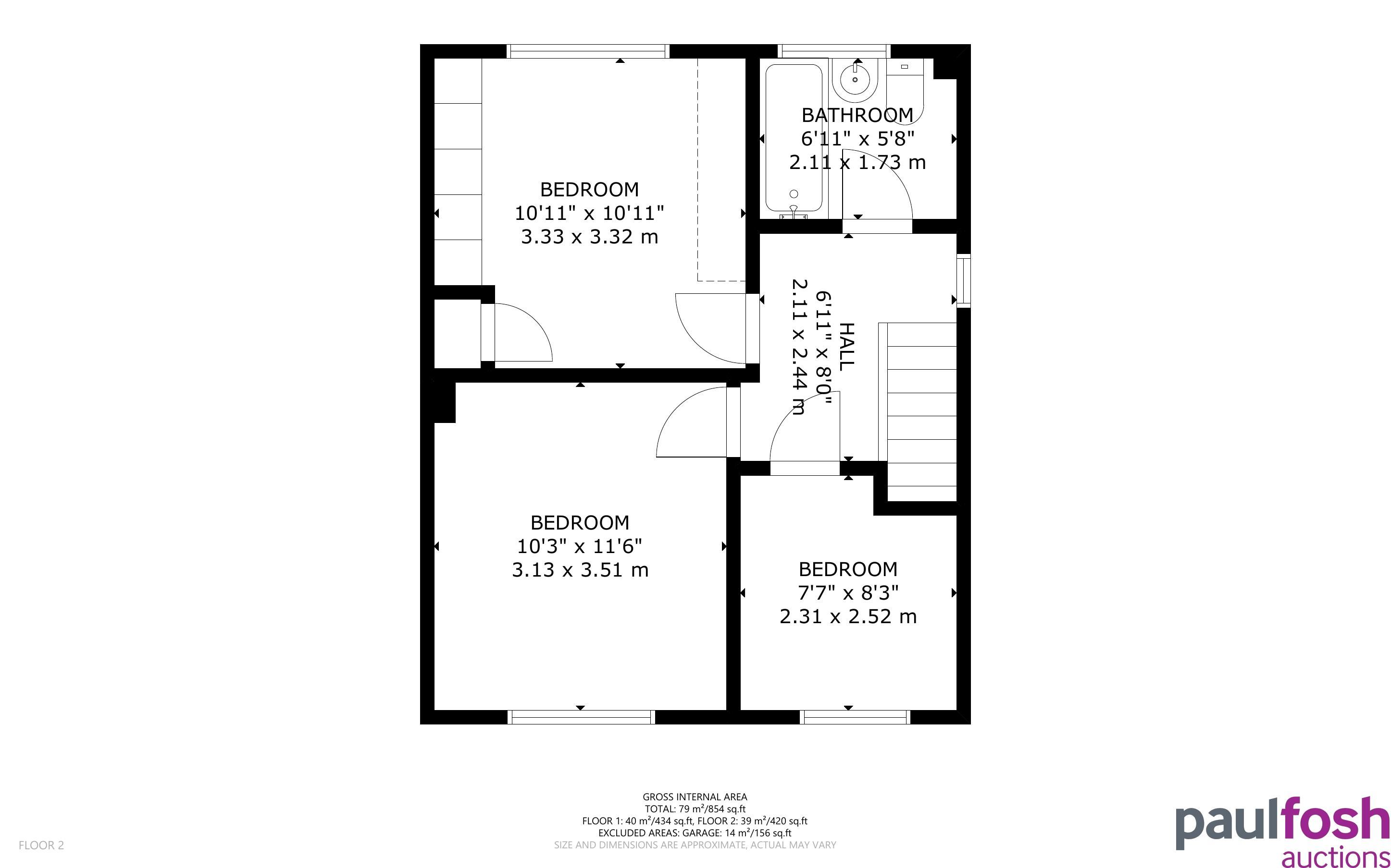 First Floor: Landing, 3 bedrooms, bathroom