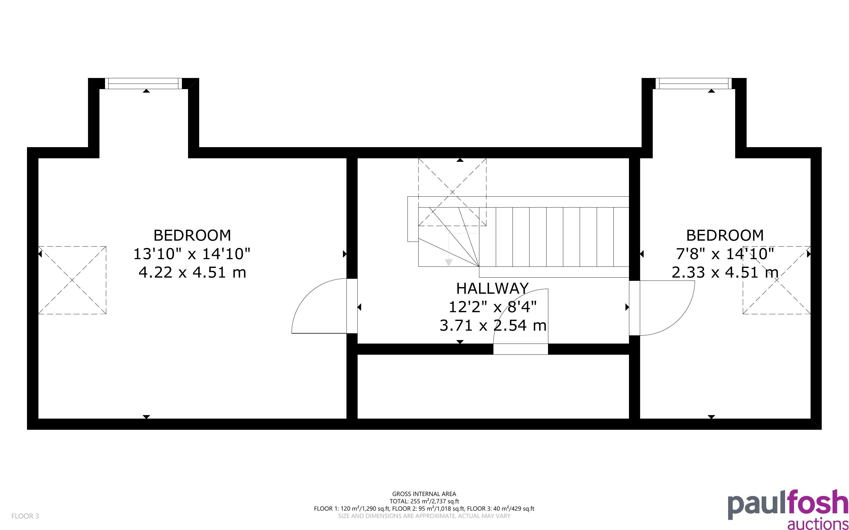 Second Floor: 2 bedrooms, large storage cupboard
