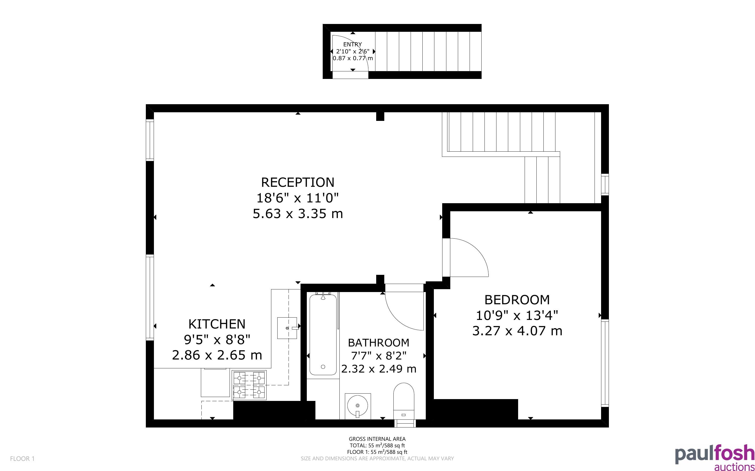 | Flat 2 | First Floor | Entrance hallway, lounge/kitchen, bedroom, bathroom |