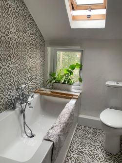 First Floor: Landing, 2 bedrooms, bathroom, attic space via ladders from landing