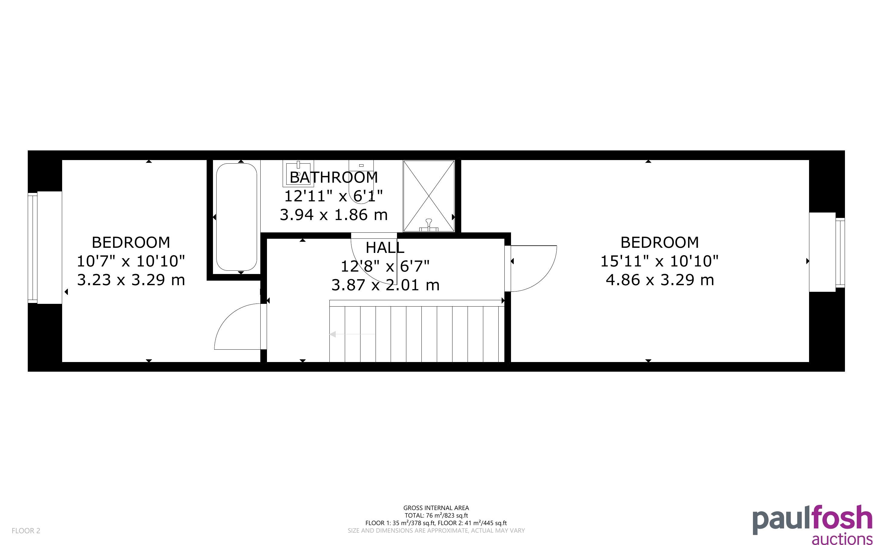 First Floor: Landing, 2 bedrooms, bathroom