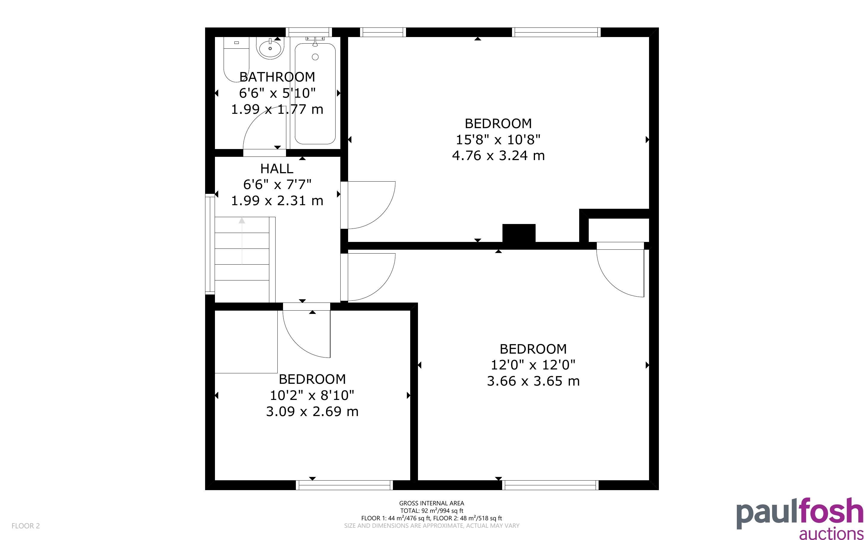 First Floor: 3 bedrooms, bathroom