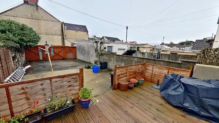 Outside: Hard landscaped garden with decked area, hardstanding area with gated access from the rear.