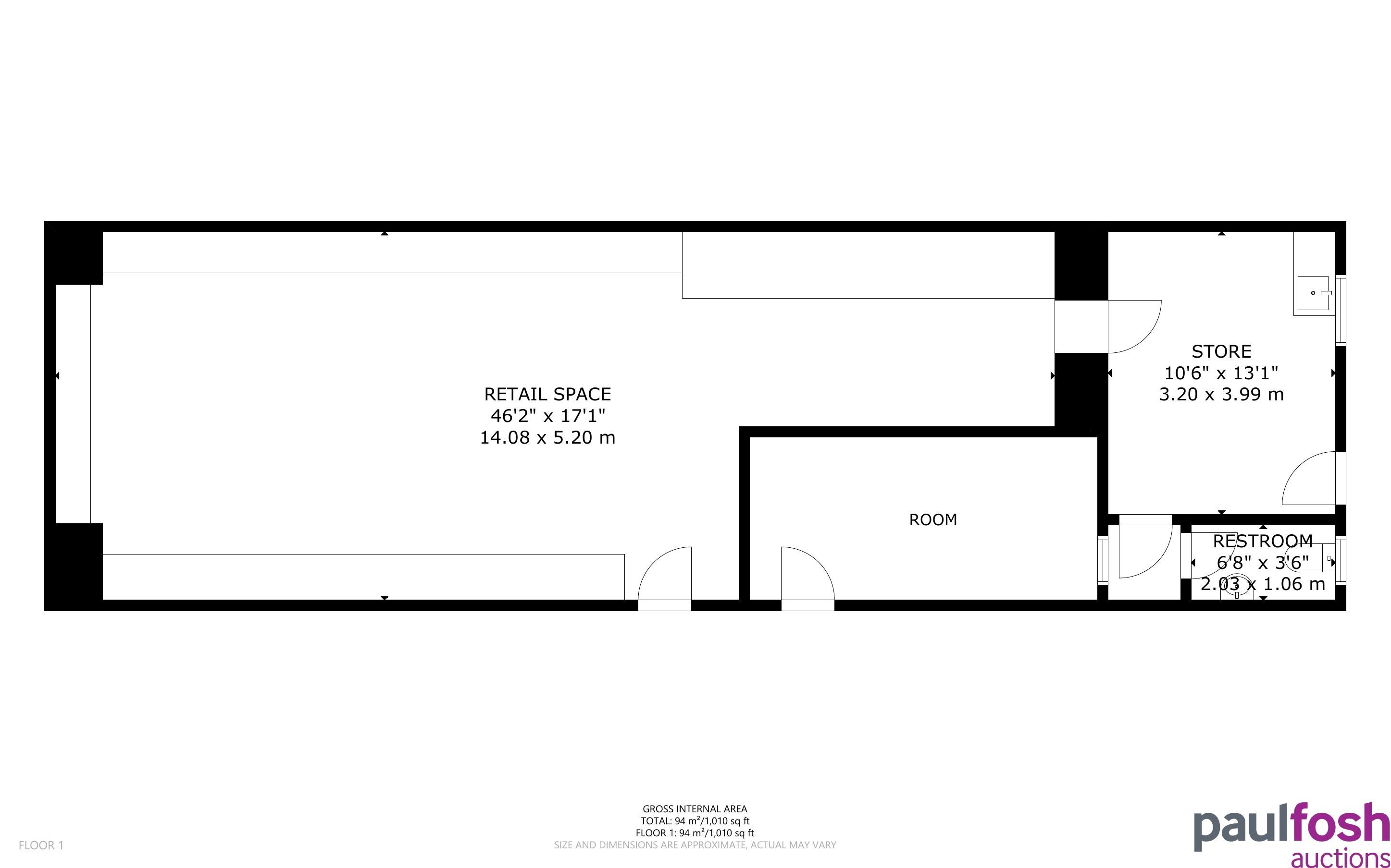 Shop (GF) Entrance, retail sales area, rear kitchen and storage space, w/c
