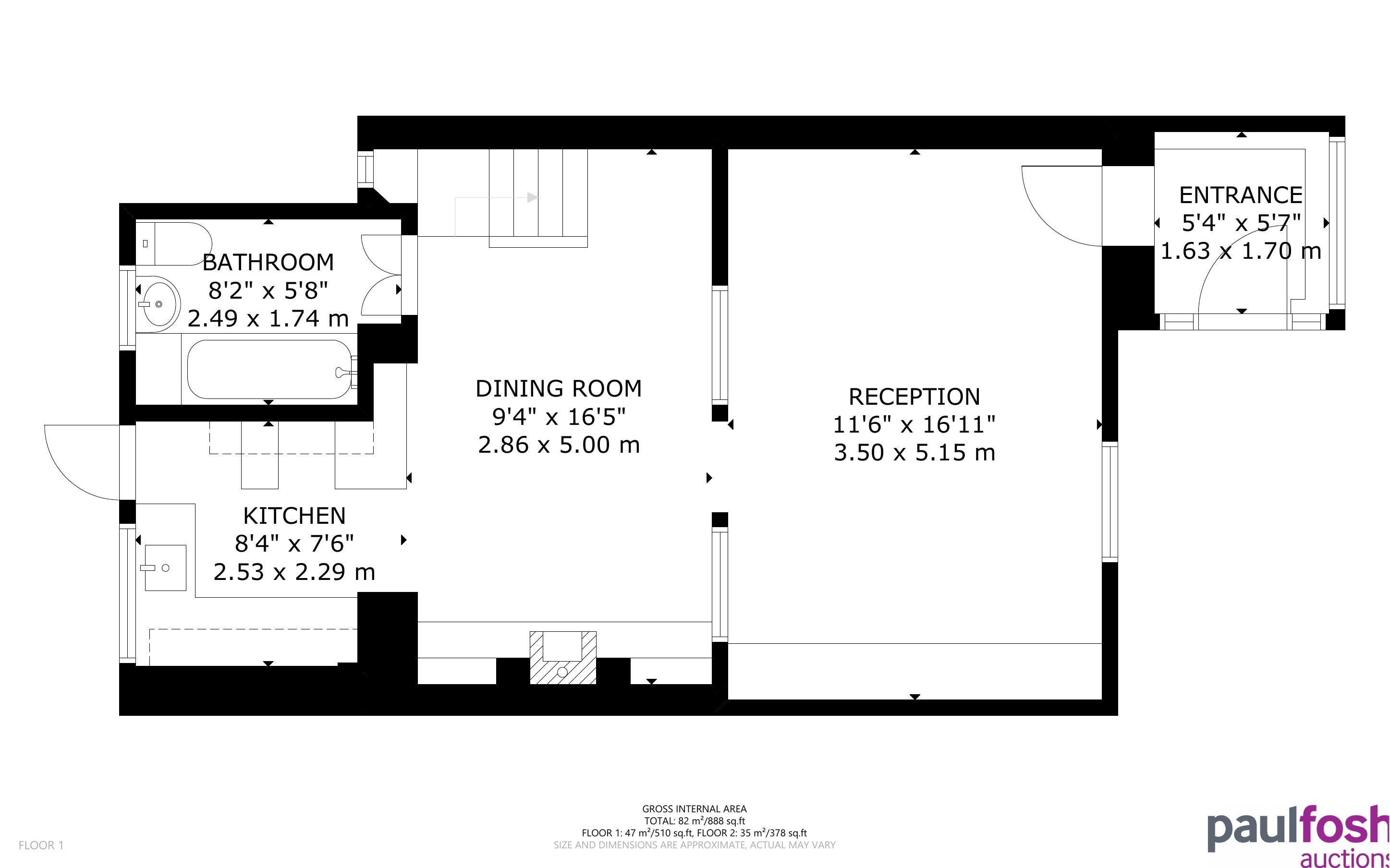 Ground Floor: Entrance, lounge/dining room, kitchen, bathroom