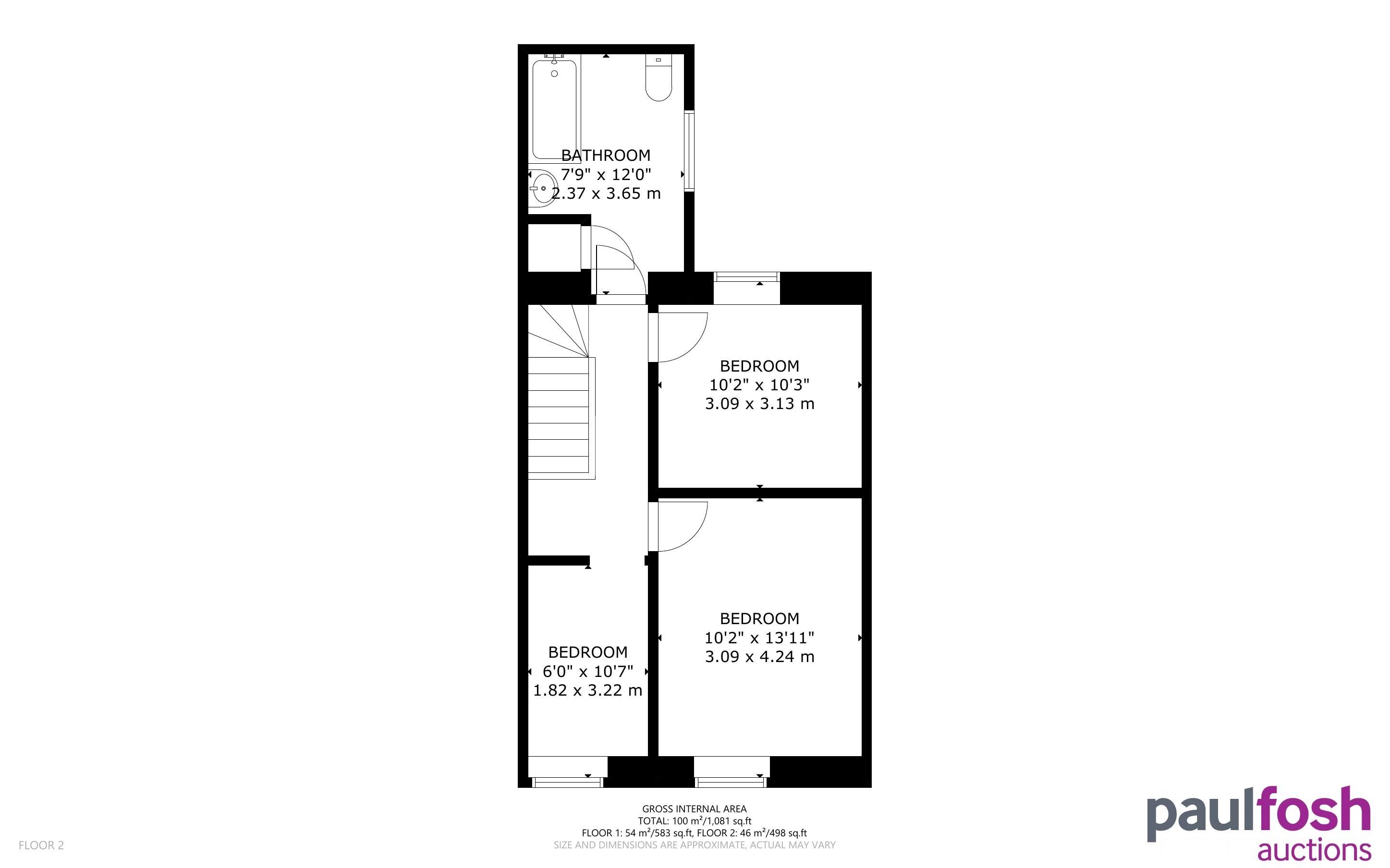 First Floor: Landing, 3 bedrooms, bathroom