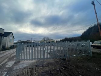 A compound yard totalling approximately 0.14 acres. The yard is fully enclosed with a secure metal fence and is accessed via gates to the front of the site.