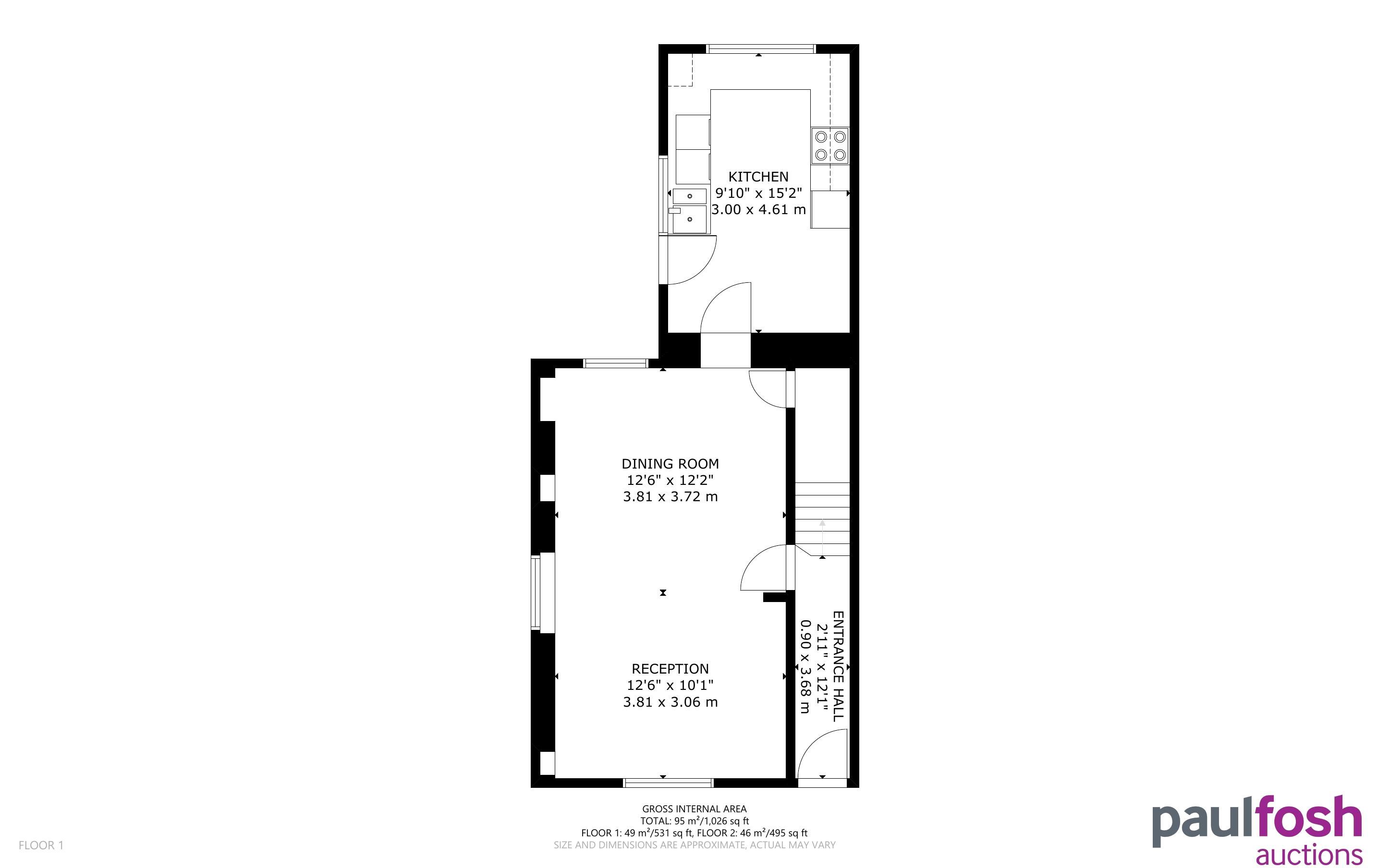 Ground Floor: Entrance. lounge/dining room. kitchen