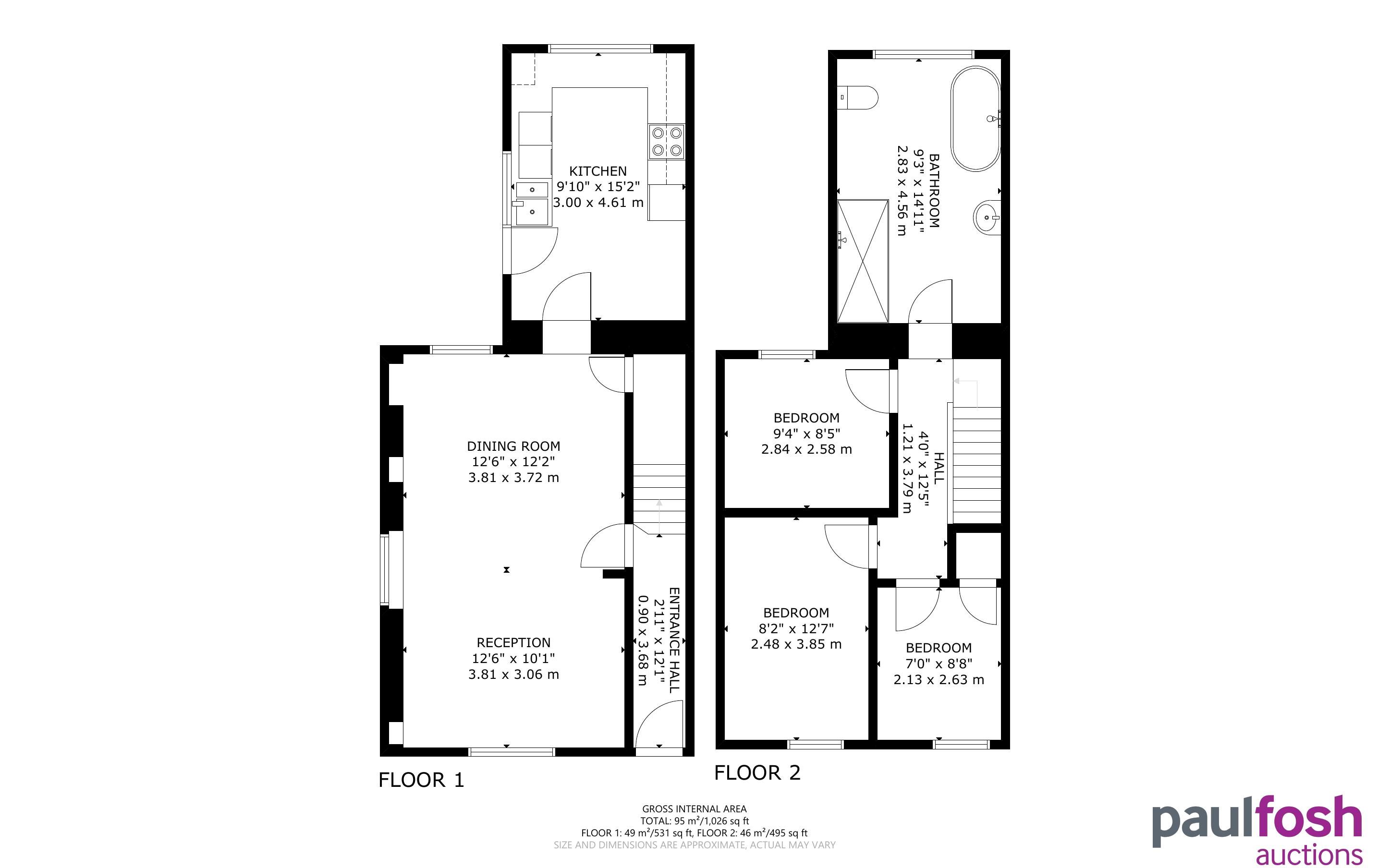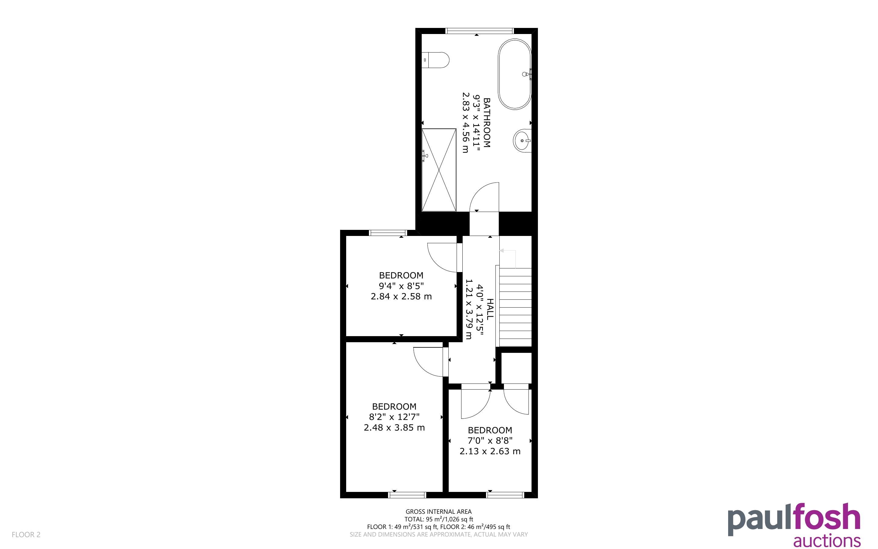 First Floor: 3 bedrooms, bathroom