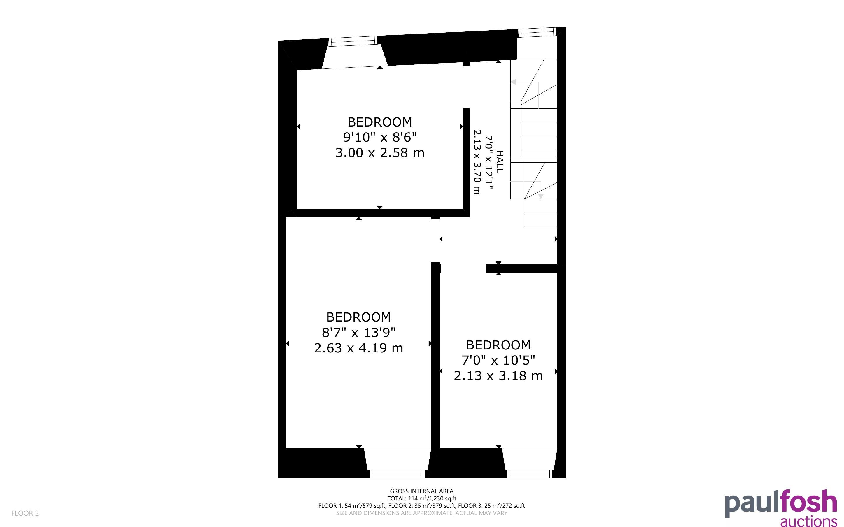 First Floor: Landing, 3 bedrooms with stairs to attic space