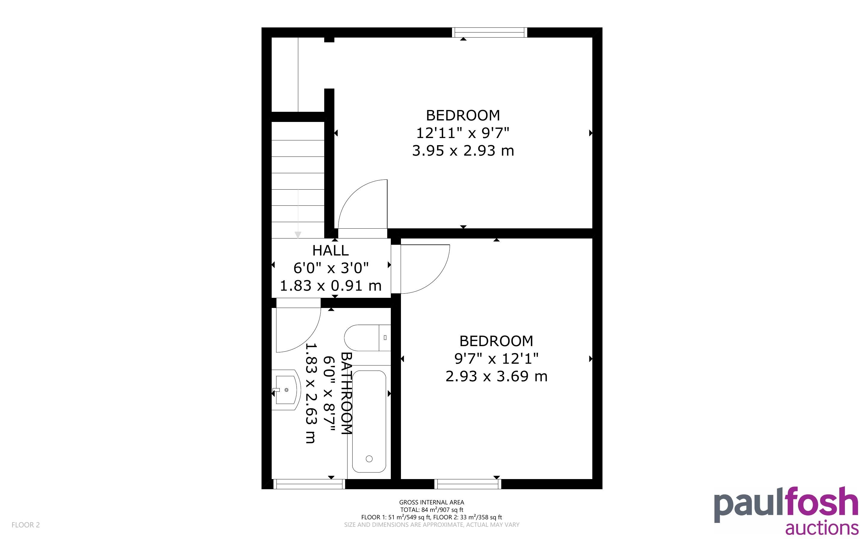 First Floor: 2 bedrooms, bathroom