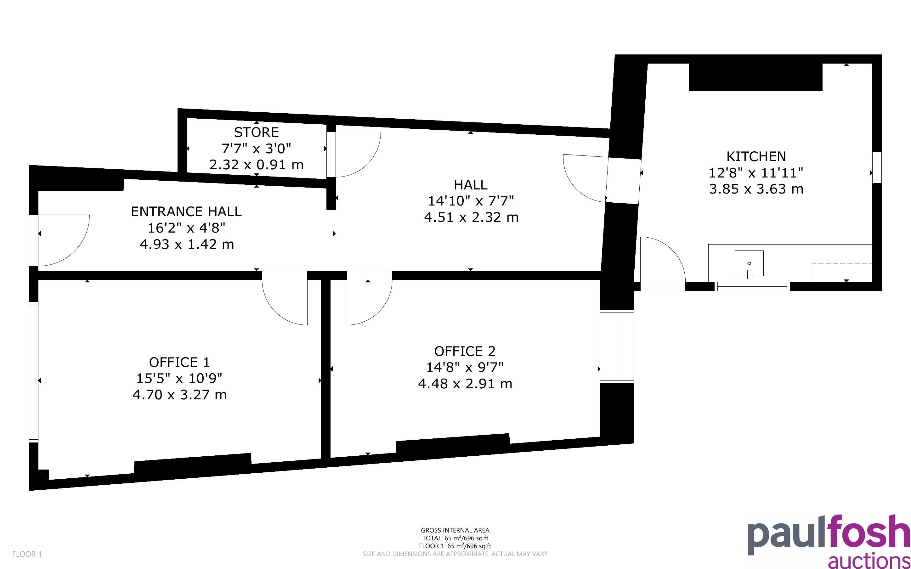 The property will require improvement works and comprises entrance hallway, two offices and kitchen.