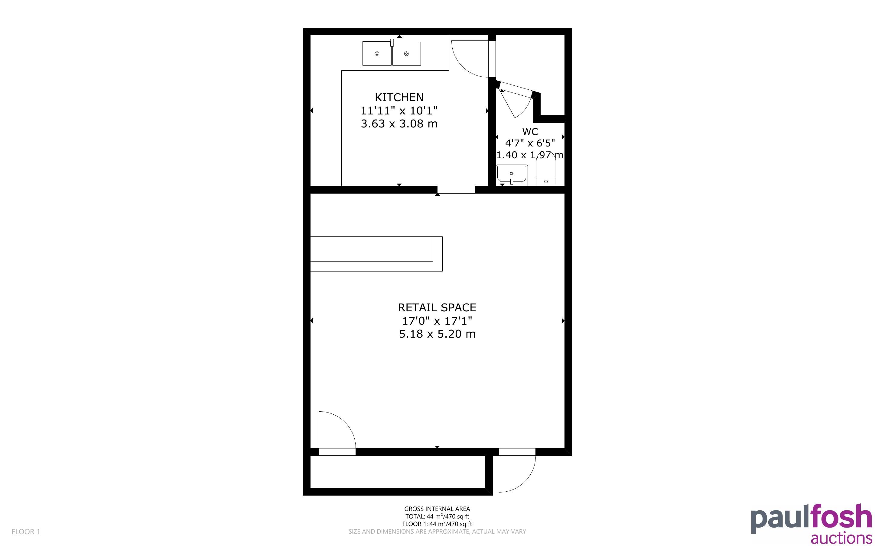 Ground Floor: Former shop area, kitchen, WC