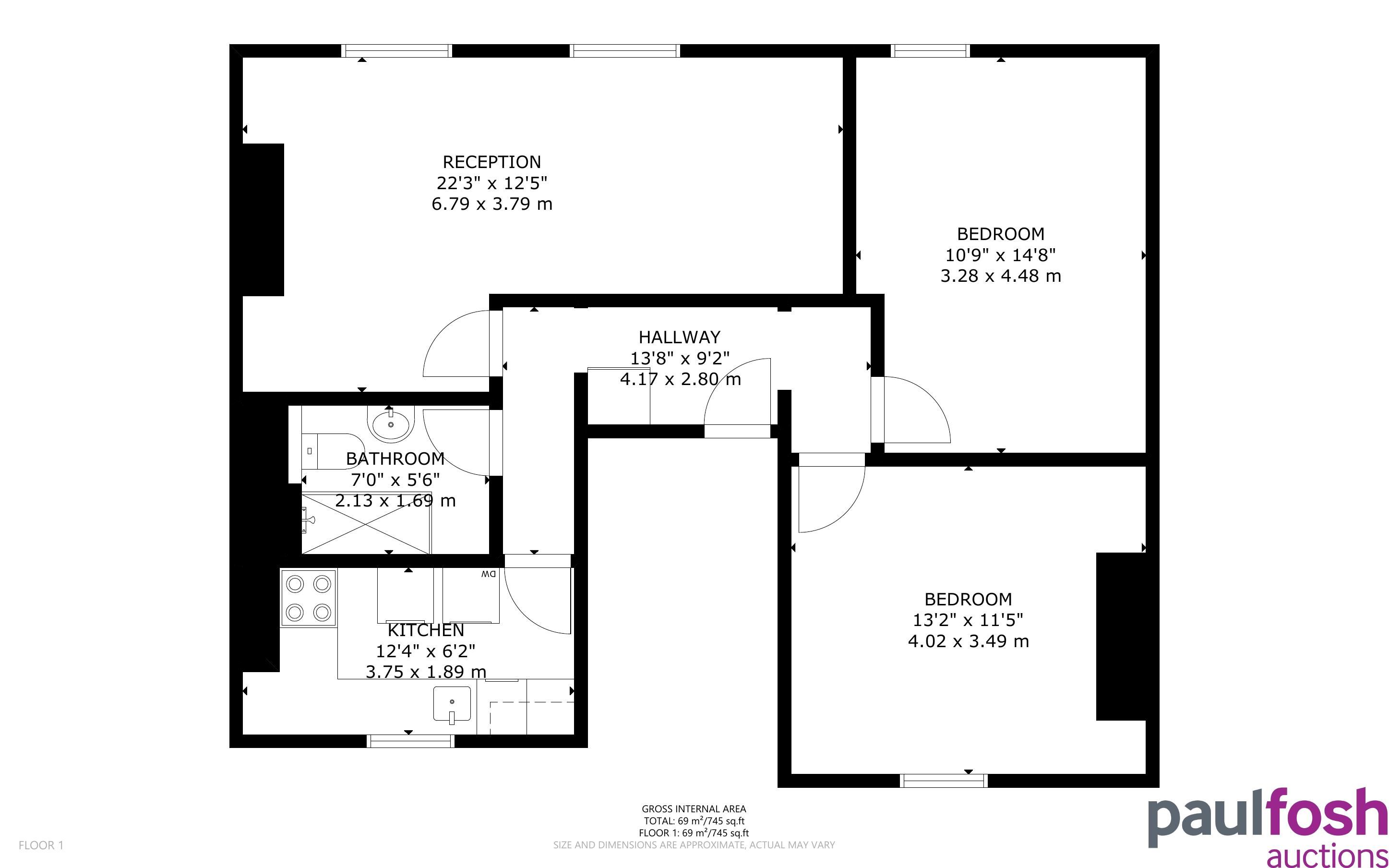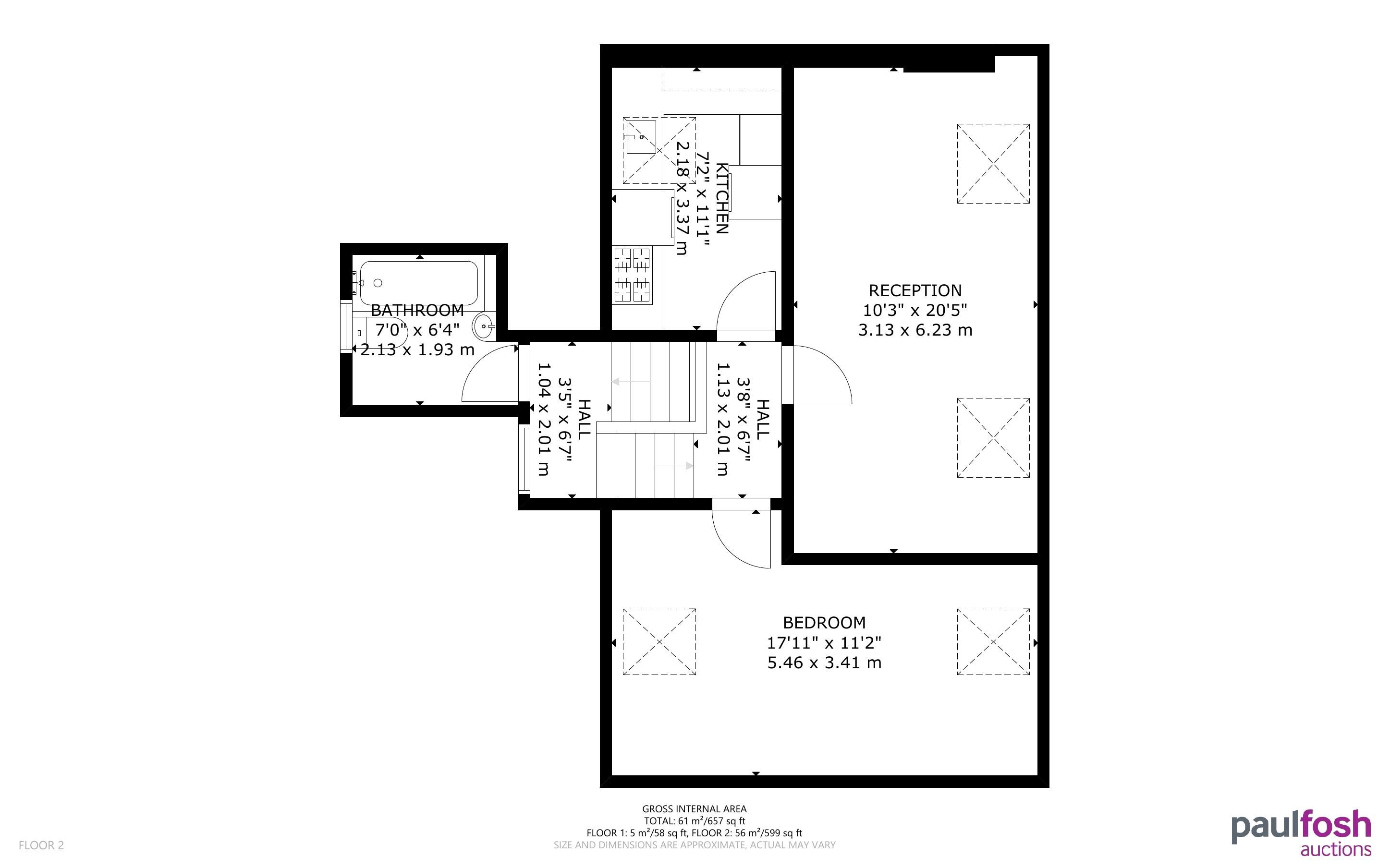 First Floor: Flat 6a – Hallway, kitchen, shower room, w/c, lounge/dining room, 2 bedrooms