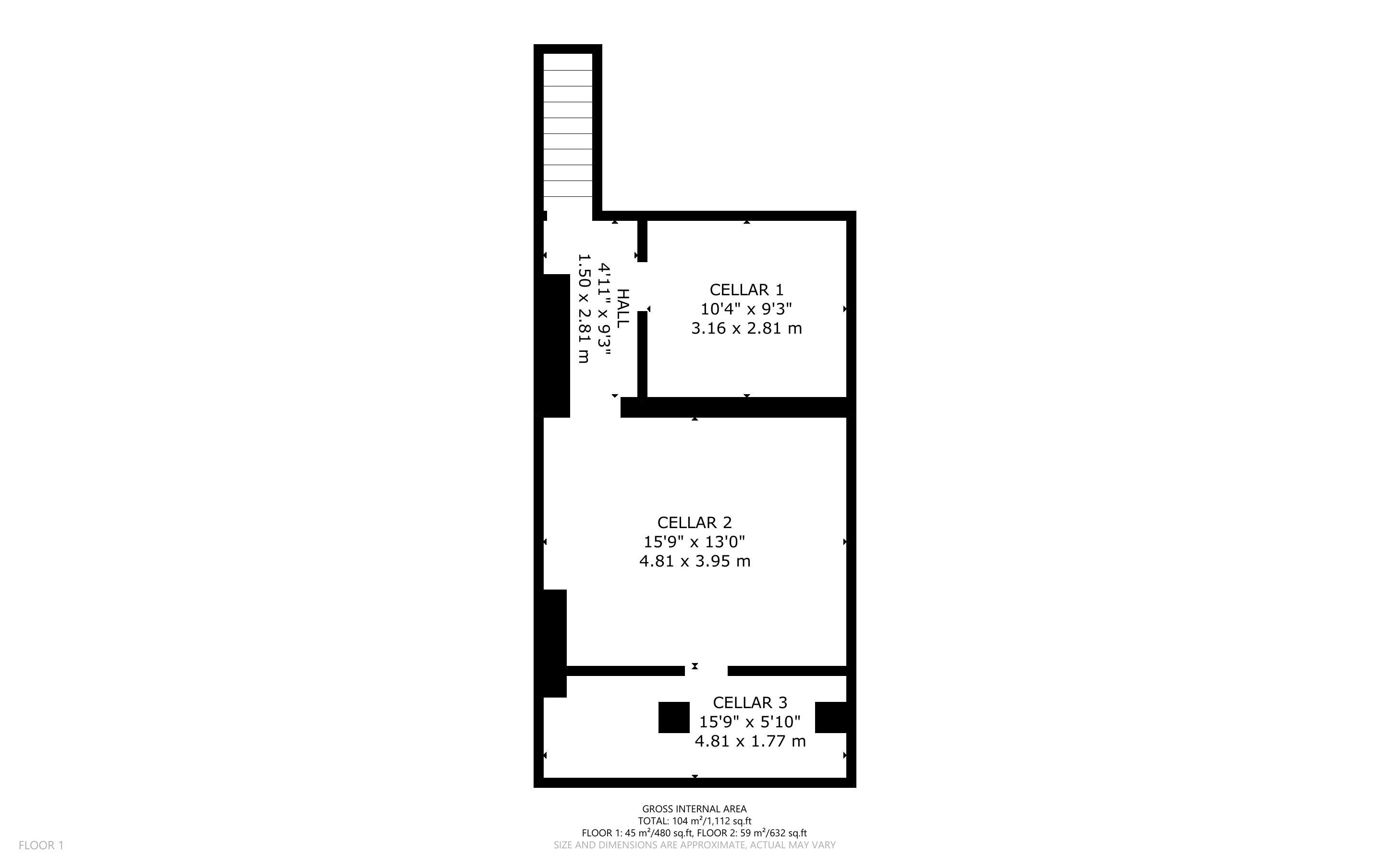 | Lower Ground | Basement area (10 x 9.4), storage room (14.9 x 12.9) | |