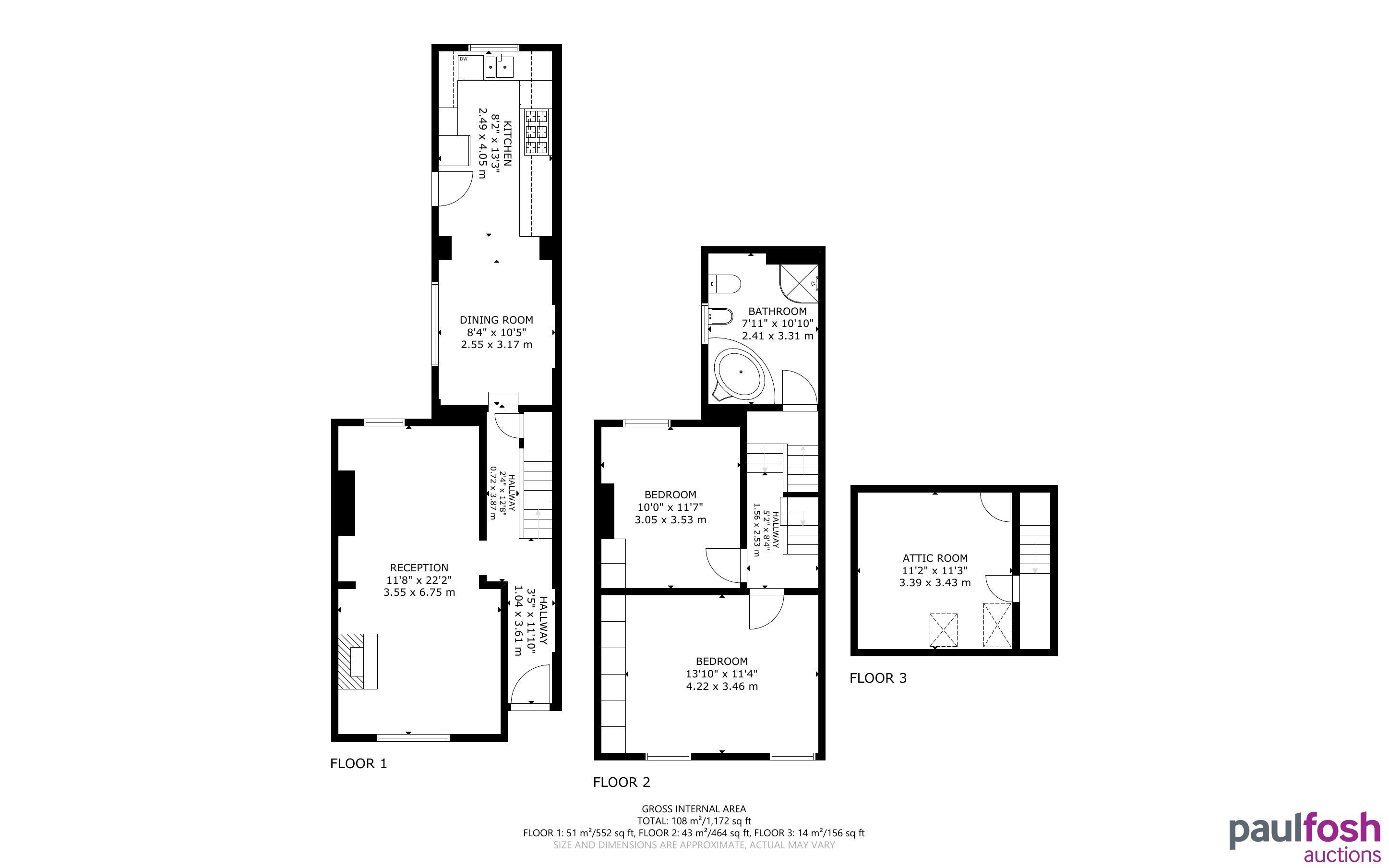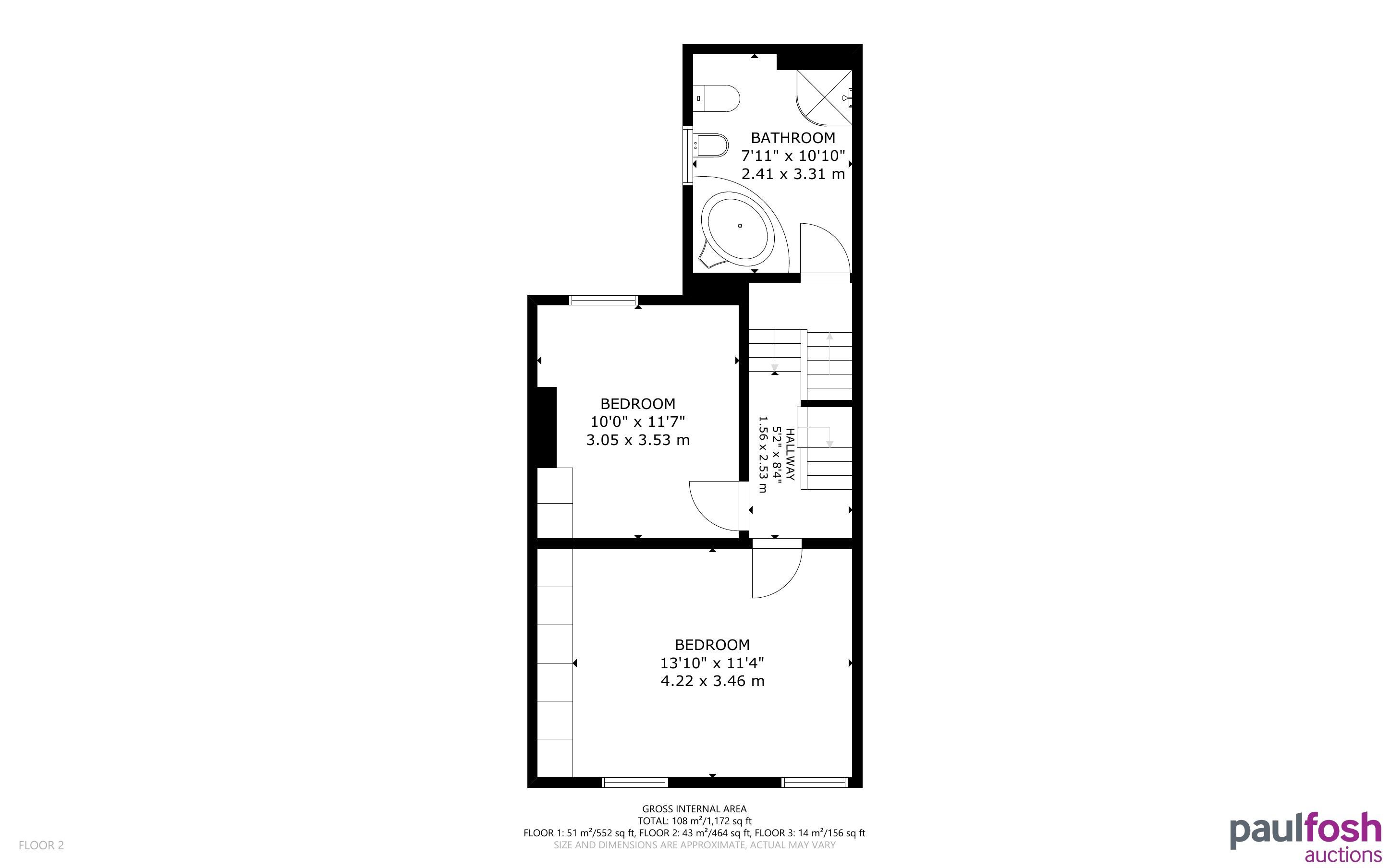 First Floor: Landing, 3 bedrooms, bathroom