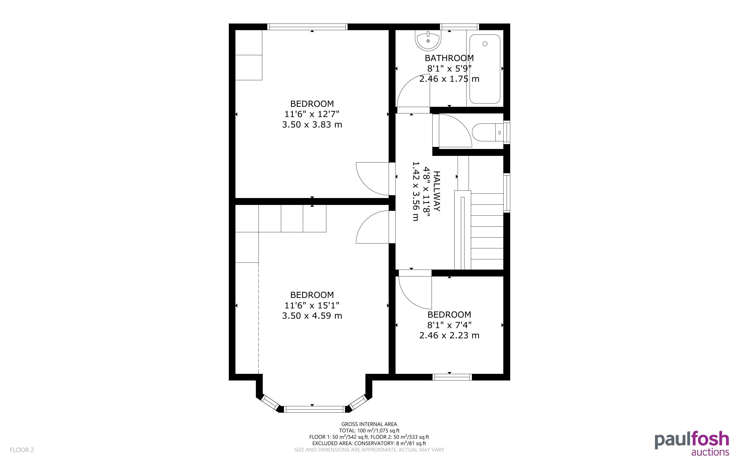 First Floor: Landing, 3 bedrooms, bathroom