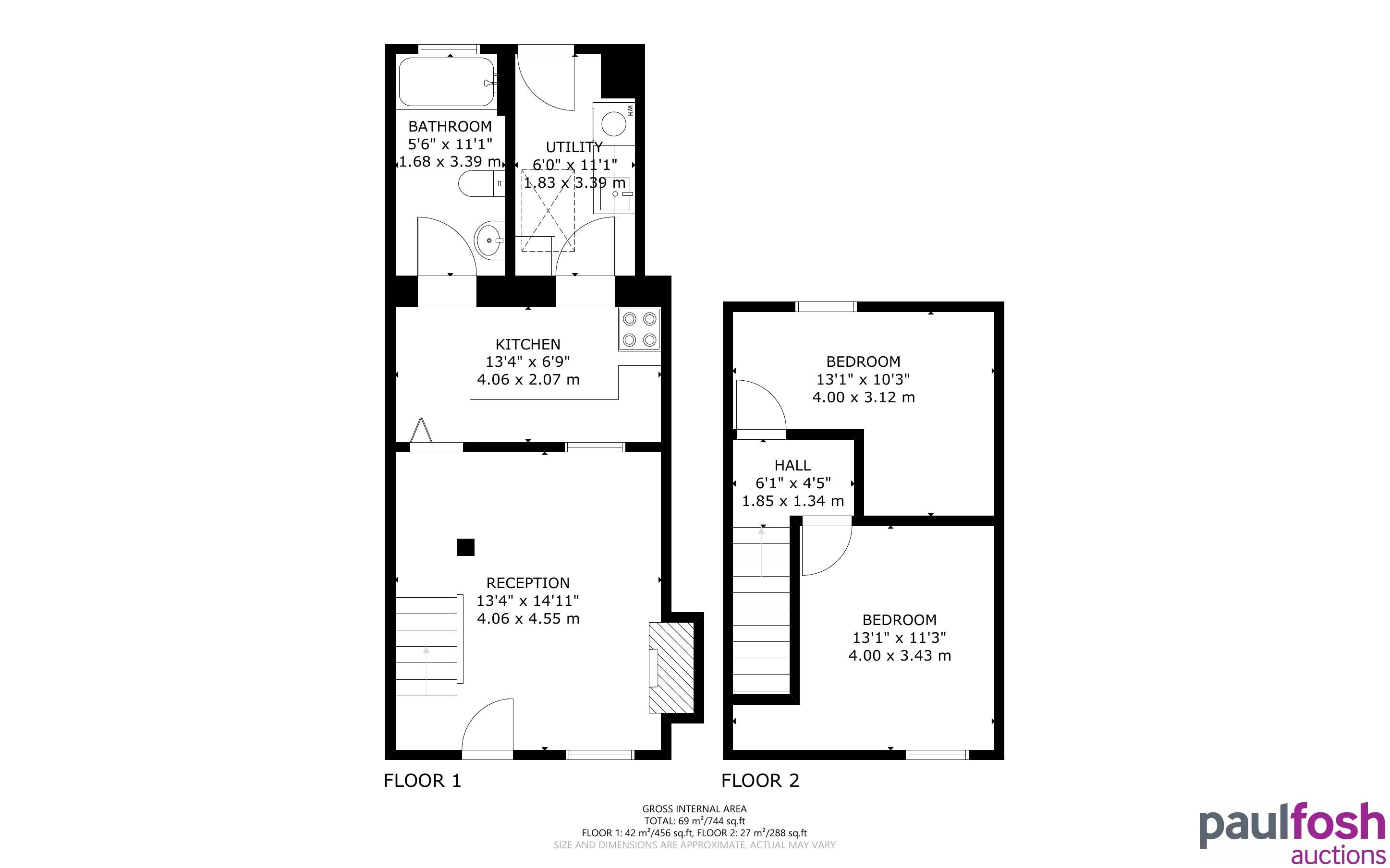 First Floor: 2 bedrooms