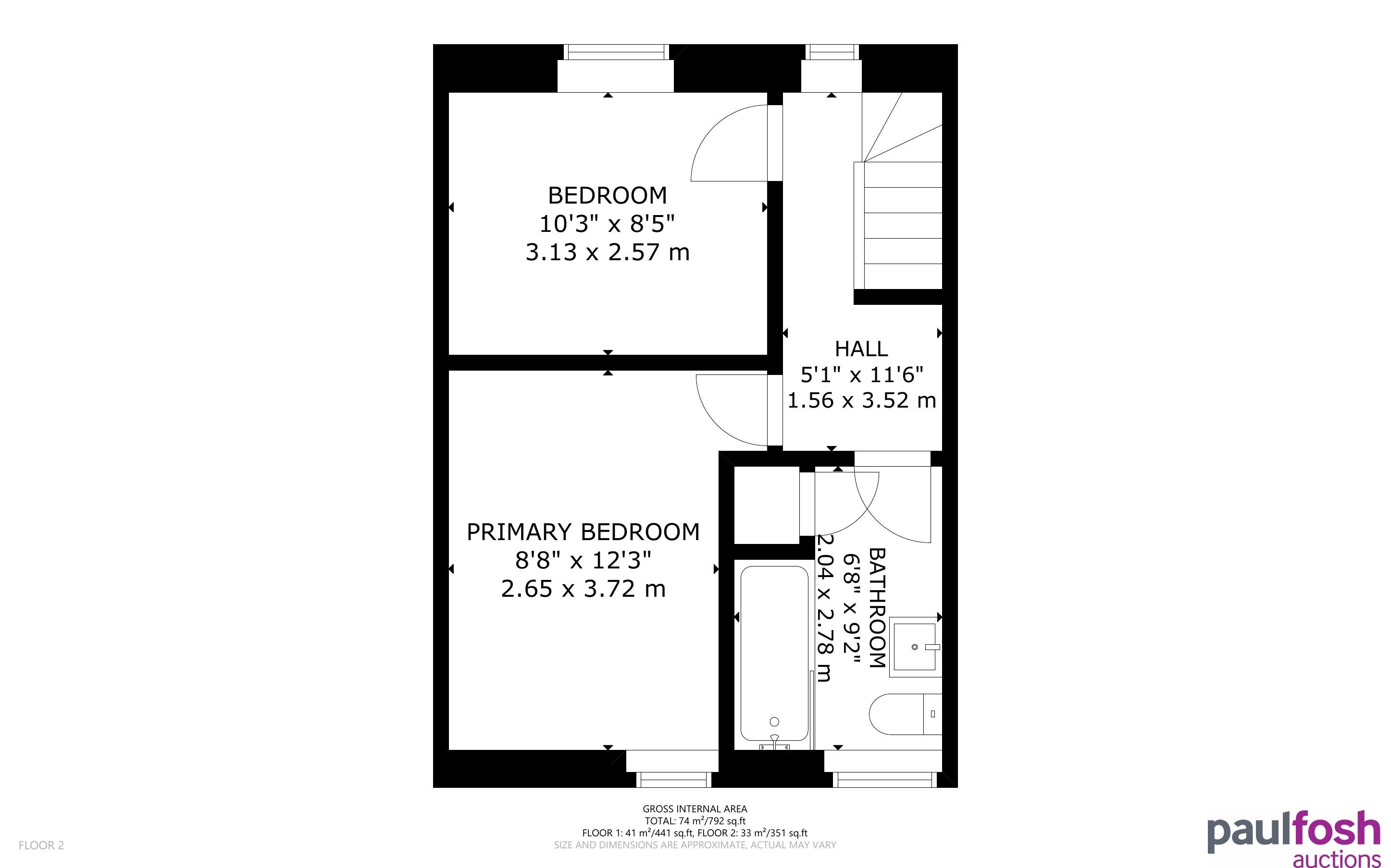 First Floor: Landing, 2 bedrooms, bathroom