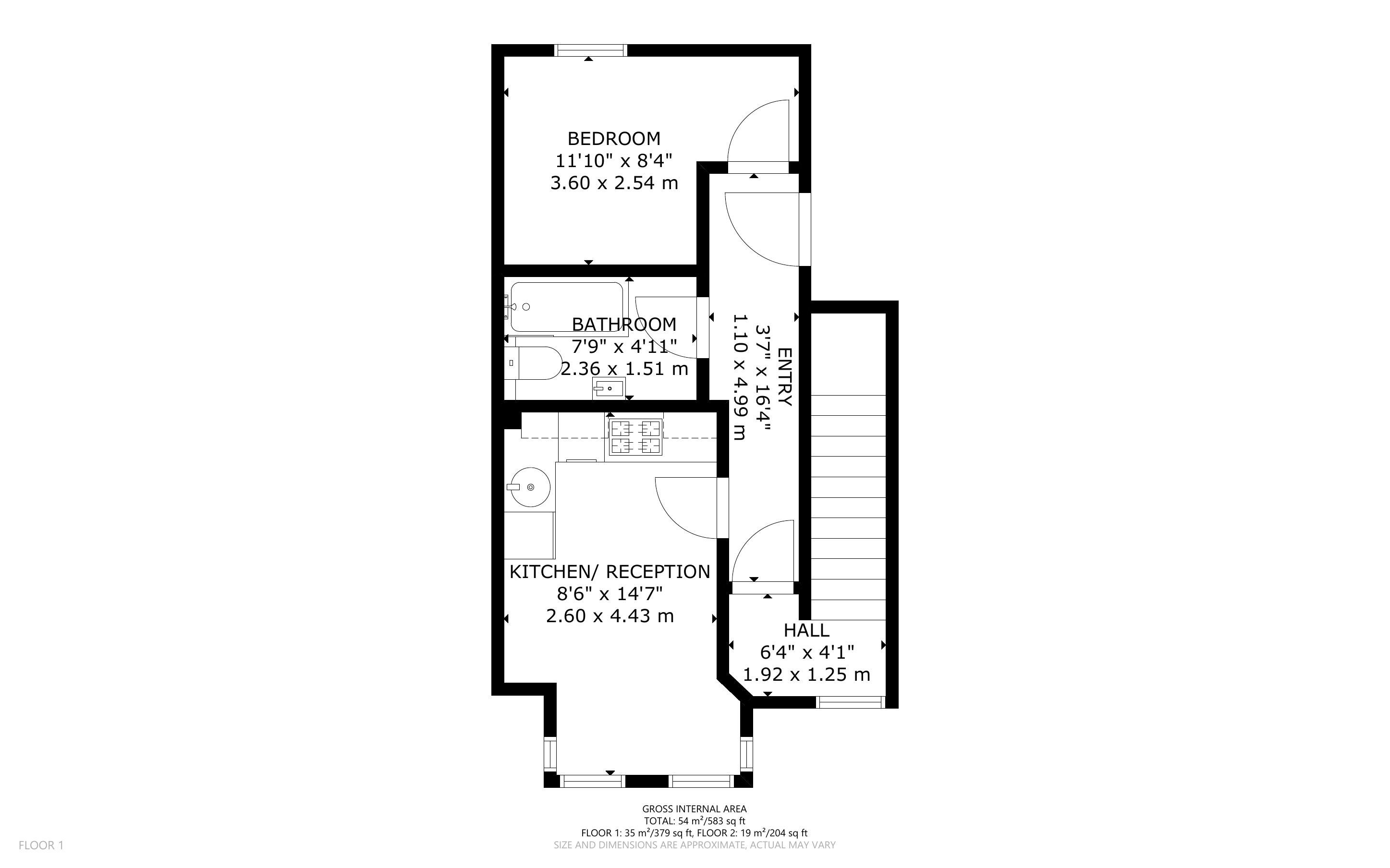 Flat C: Kitchen, lounge, stairs to ground floor, bedroom, bathroom, access to shared garden