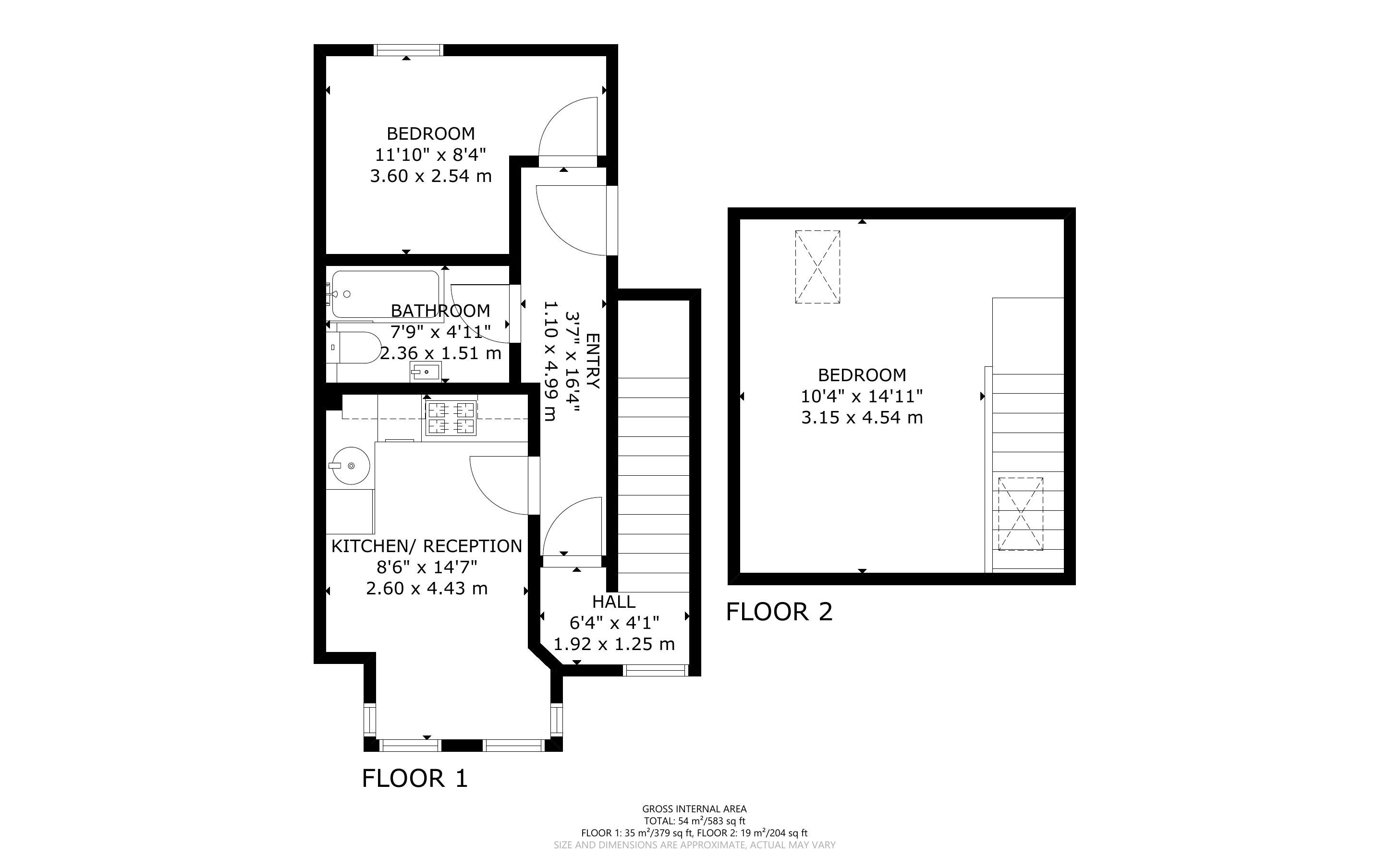 Ground Floor: Communal Hallway, stairs to first floor, Flat B - double bedroom, lounge kitchen, bathroom, access to shared garden
