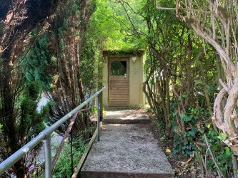 Outside: Established private gardens, detached garage, attached covered outhouse/storage room/wc area