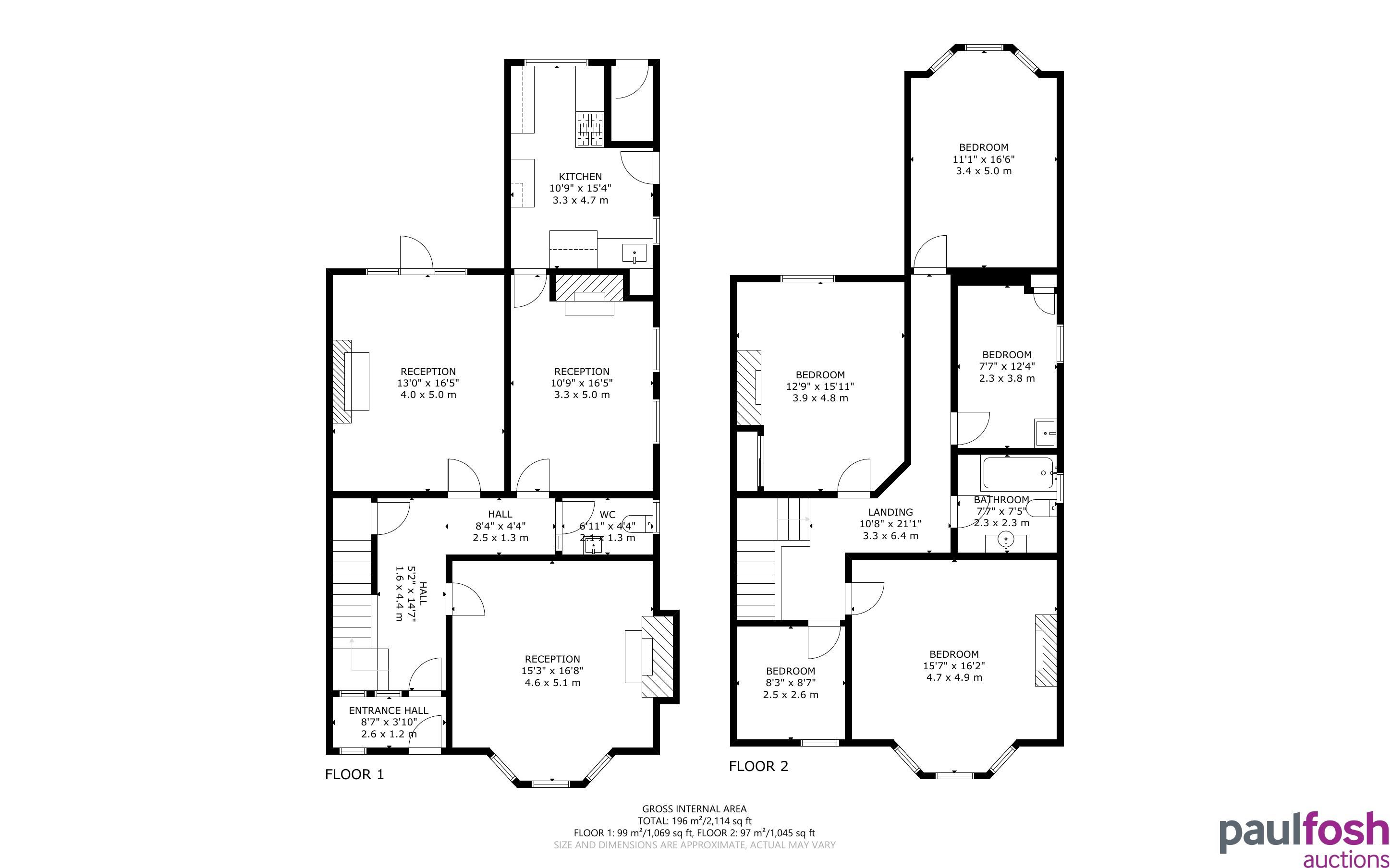 First Floor: Landing, 5 bedrooms, bathroom ( there may be scope to extend into the loft if desired).