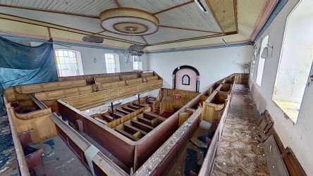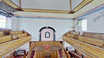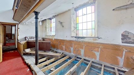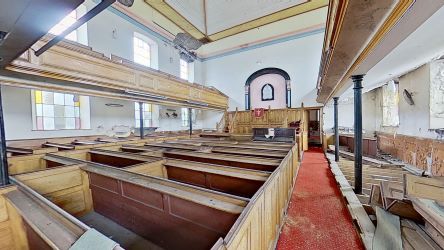 Ground Floor: Entrance foyer with stairs to both sides leading to seated gallery. Pulpit and vestry and store room