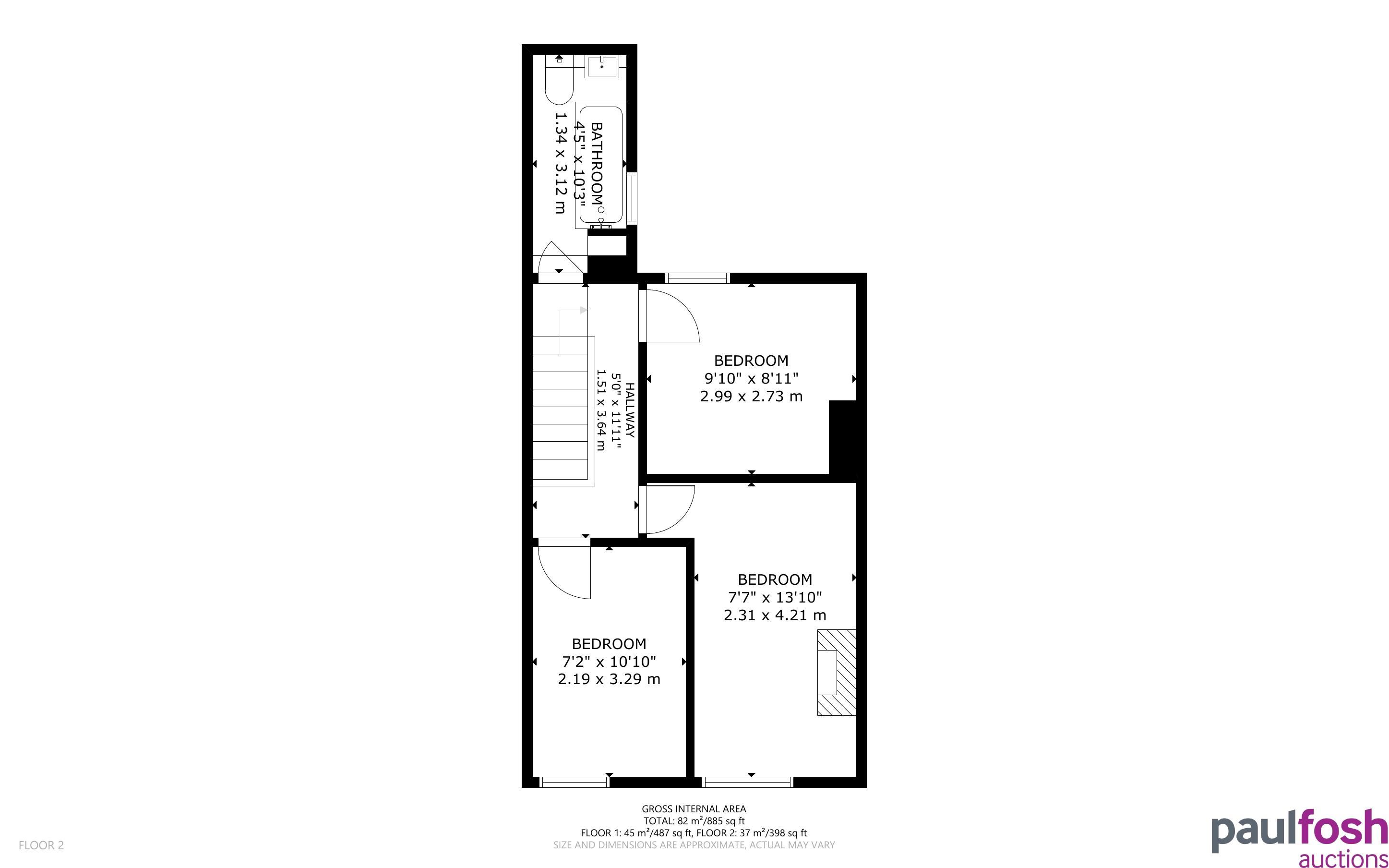 First Floor: 3 bedrooms, bathroom