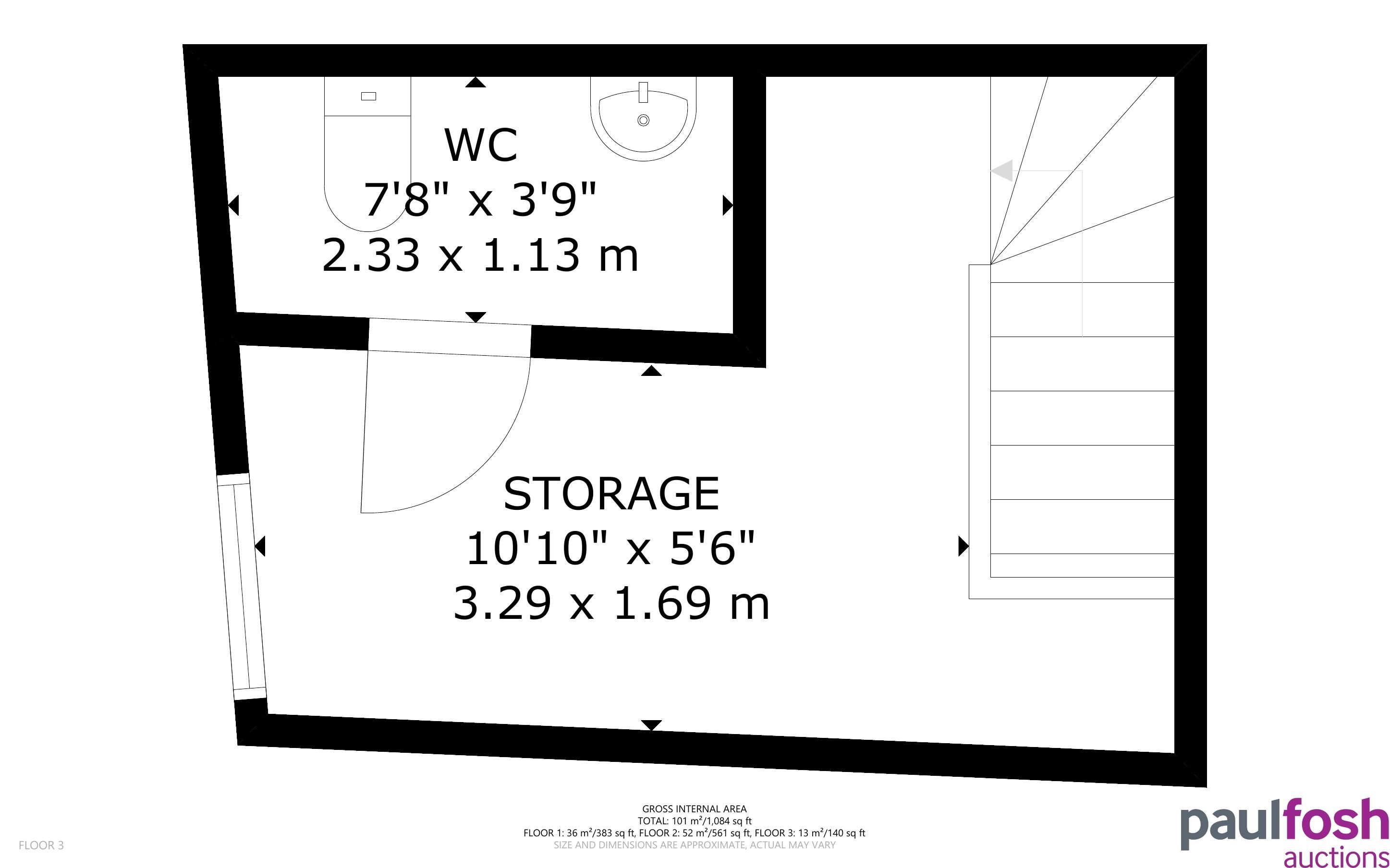 Top floor storage area, WC