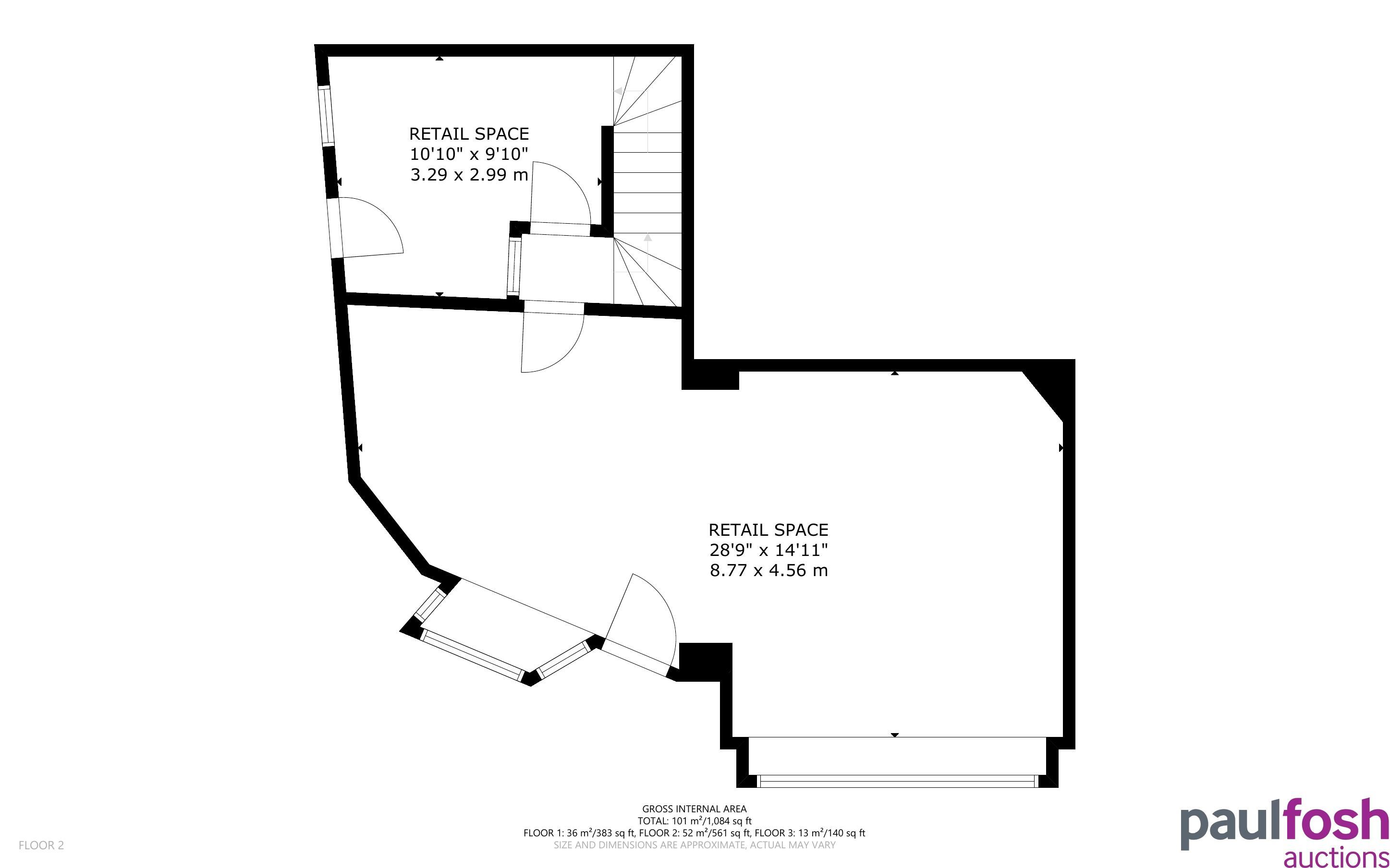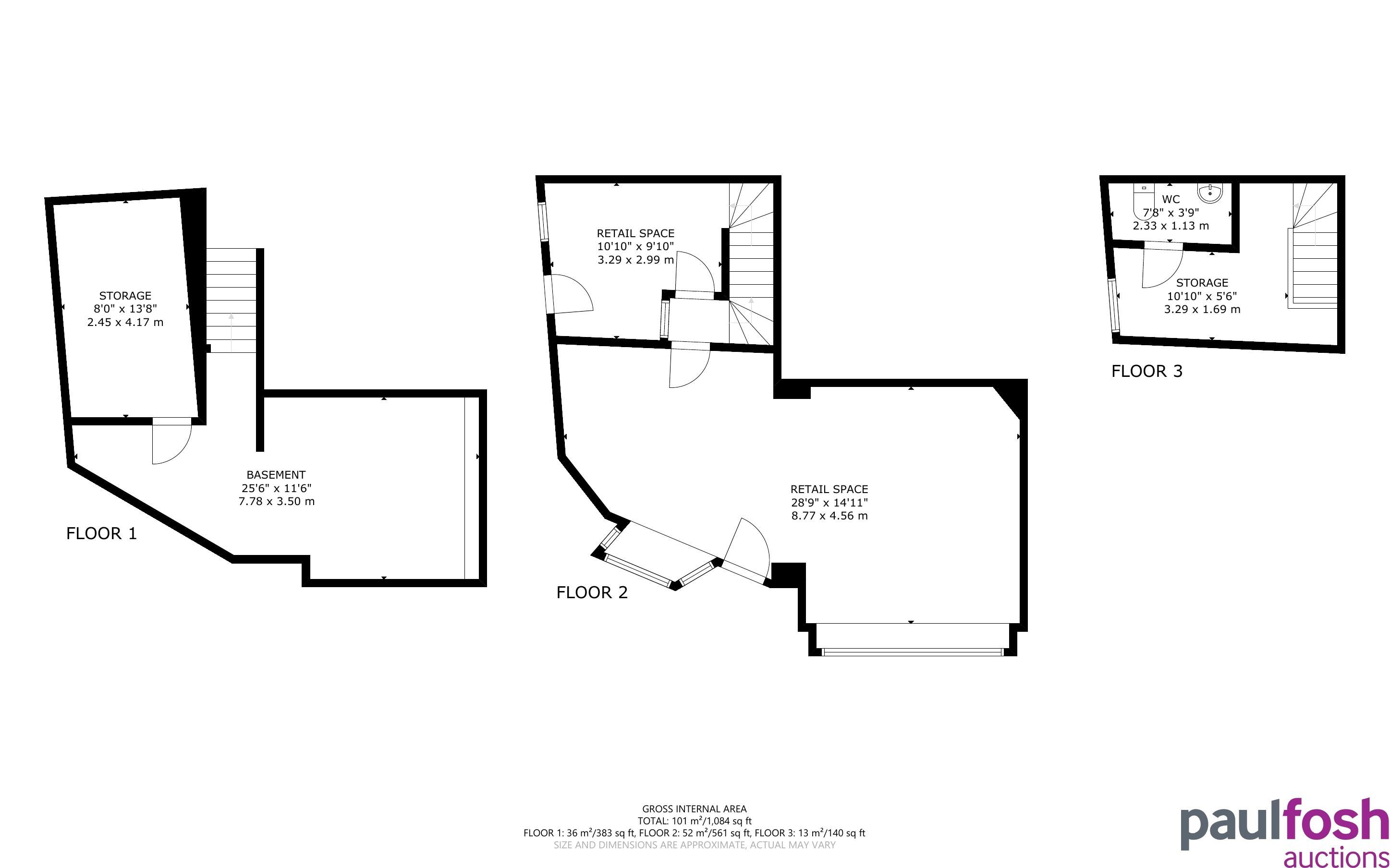 Ground: Shop retail area, further retail area. Stairs to First Floor and Basement