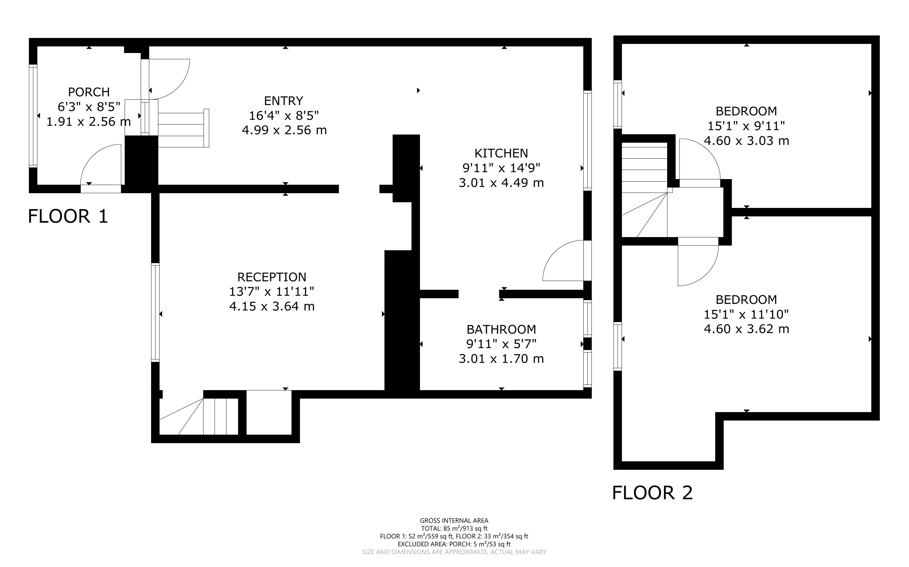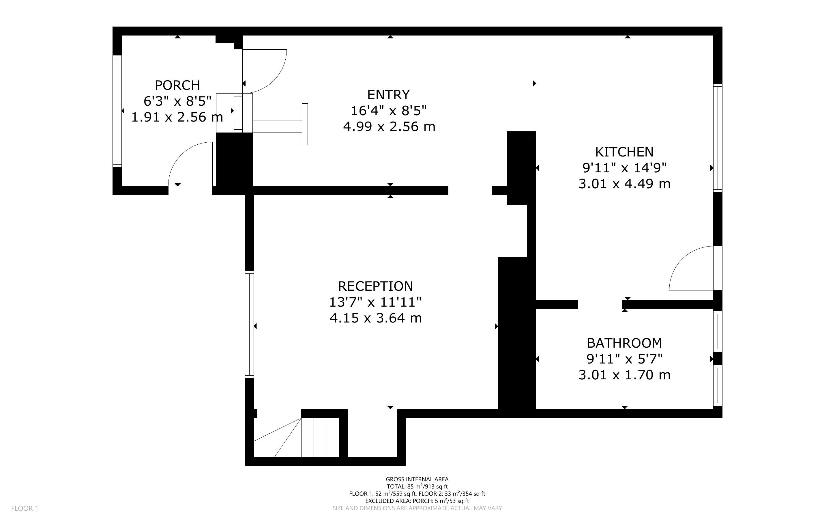 Ground Floor: Entrance Porch, Entrance Lobby, Lounge, former kitchen, former bathroom