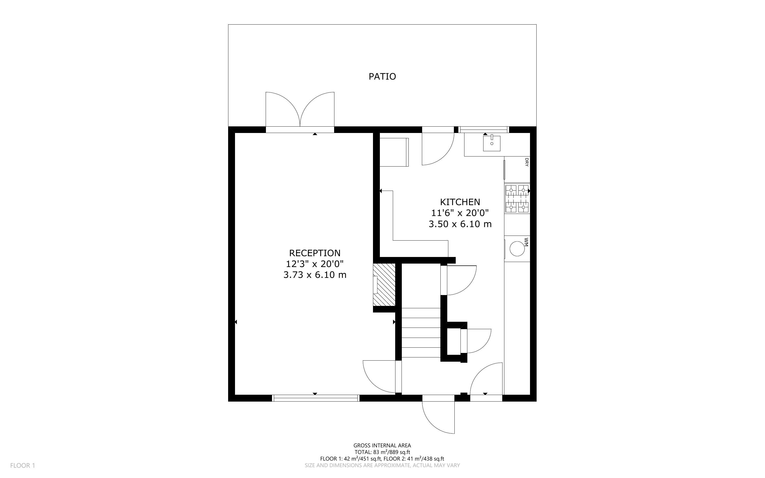 Ground Floor: Entrance, kitchen, lounge dining room