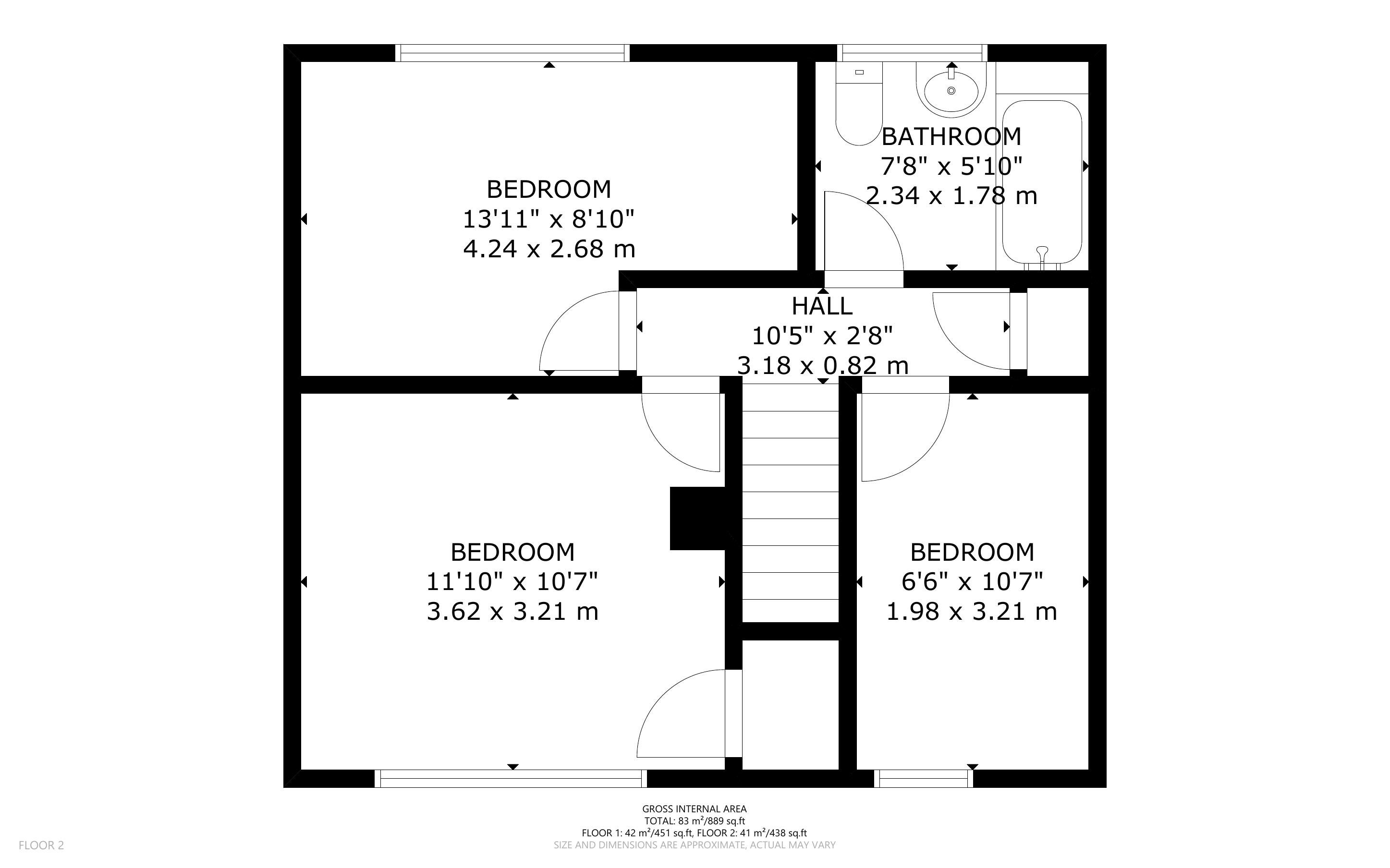 First Floor: 3 bedroom, bathroom