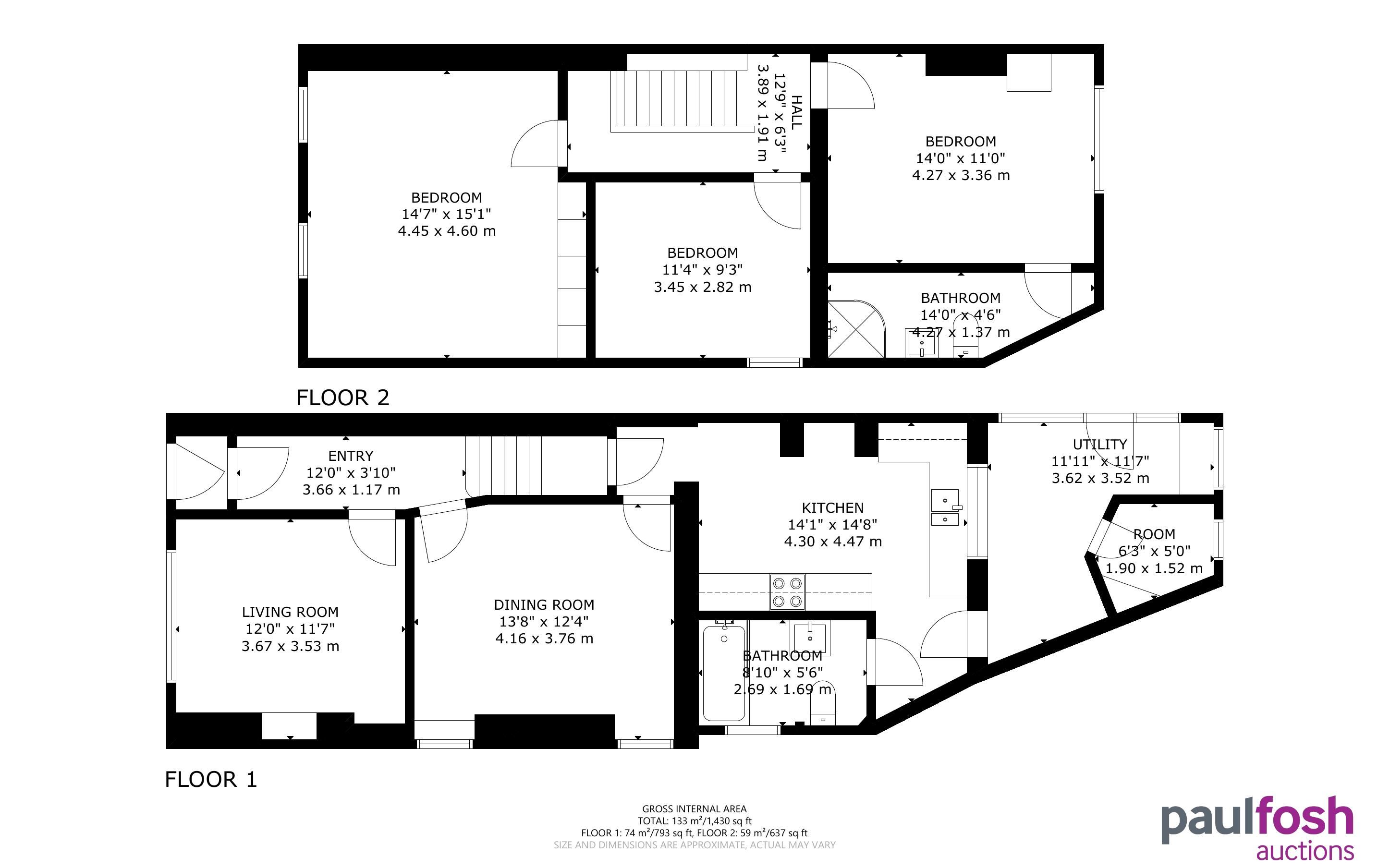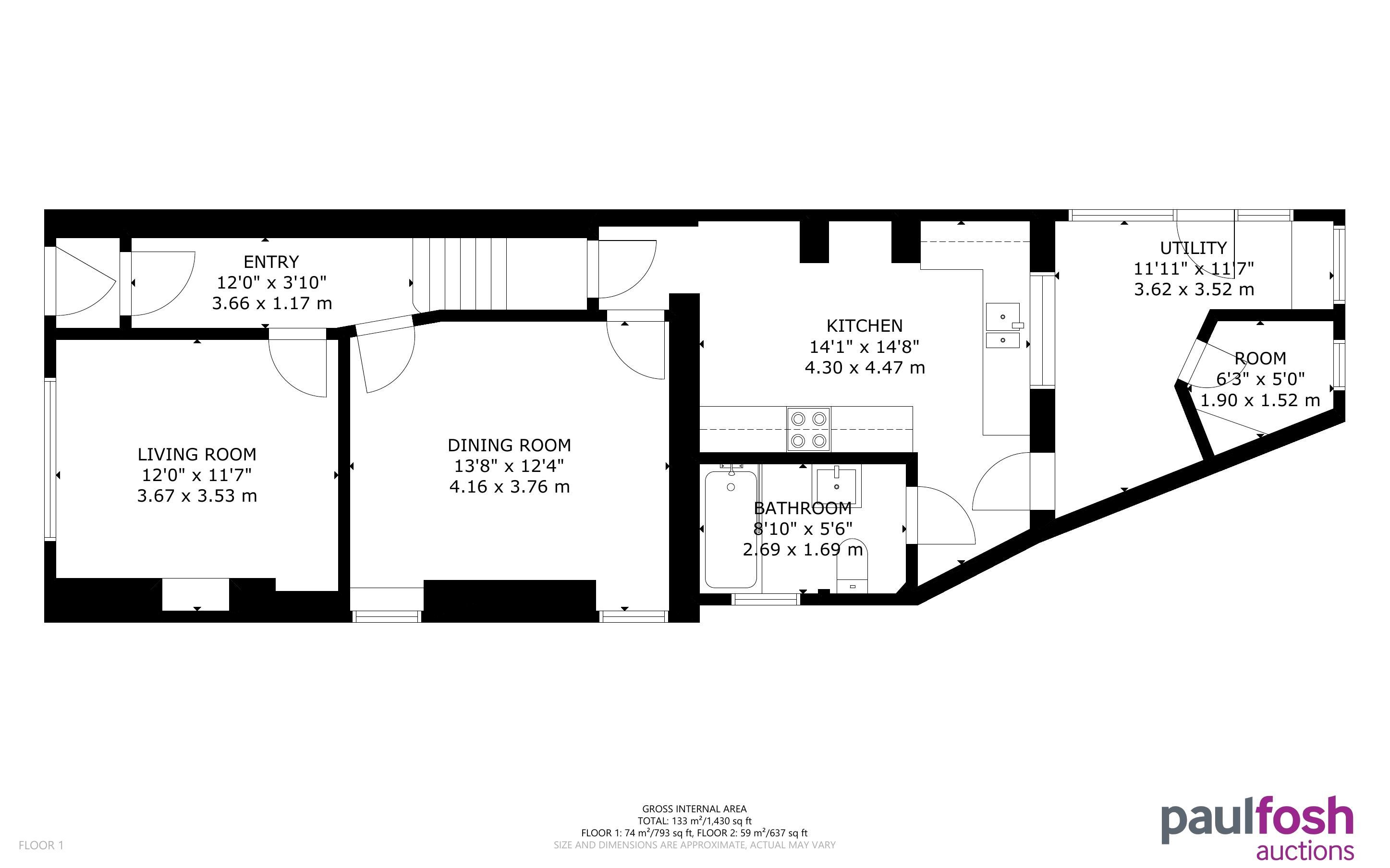 Ground Floor: Entrance Hallway, two reception rooms, kitchen, bathroom, rear lobby/utility area