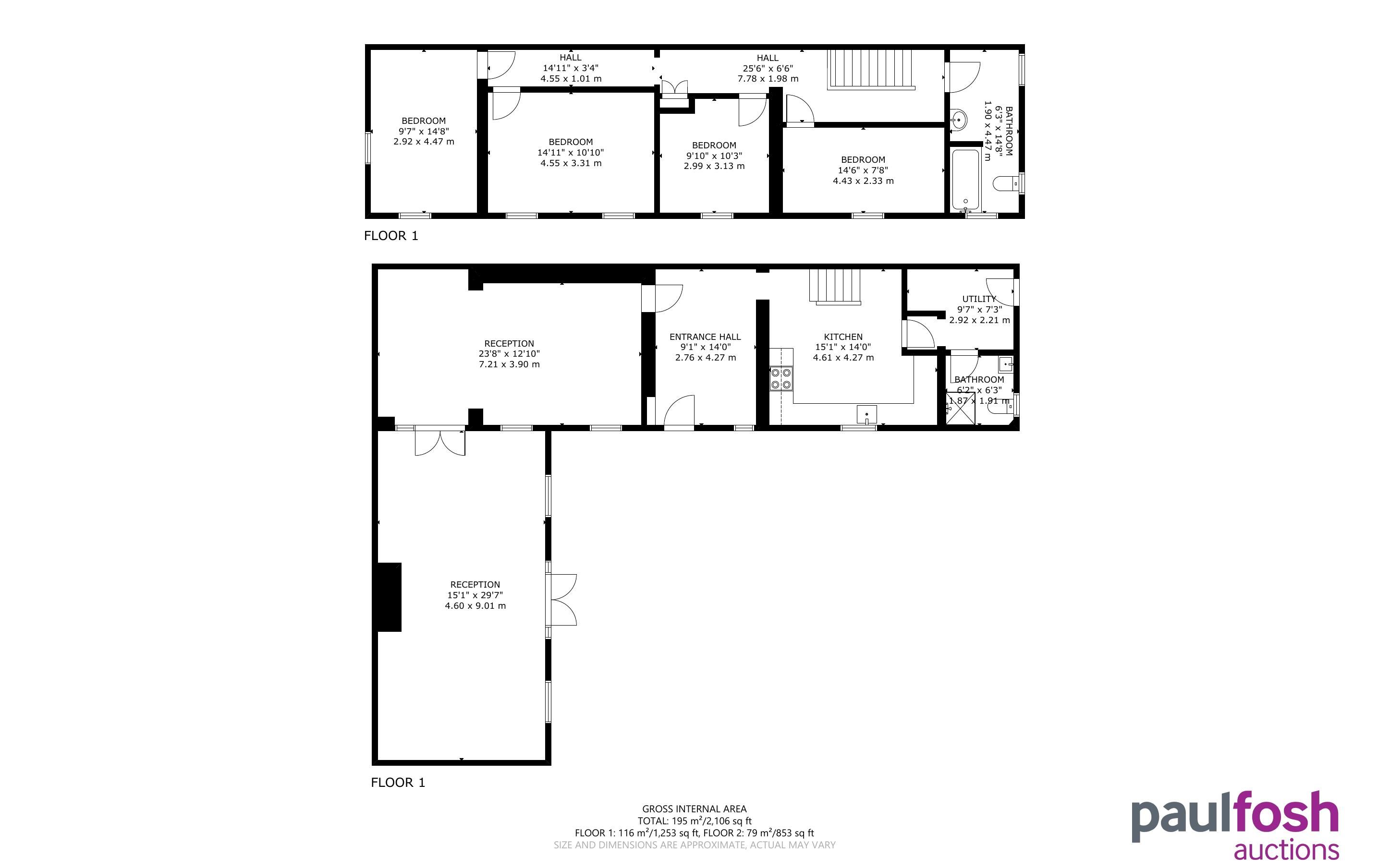 Ground Floor: Entrance foyer, 2 reception rooms, kitchen and utility area and downstairs bathroom
