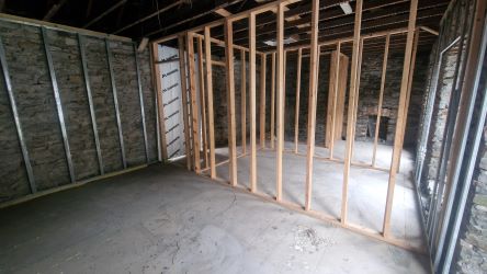 A detached house with full planning permission for a 3 storey rear extension to create a 4-bedroom house. The main house has been stripped back and is partly renovated including stud partitions. The interior is currently laid out with a large room on the ground floor and newly installed staircase leading to the first floor with two stud partioned rooms plus bathroom areas. There is a rear garden with side access and parking potential at the front. The property will be sold as seen.