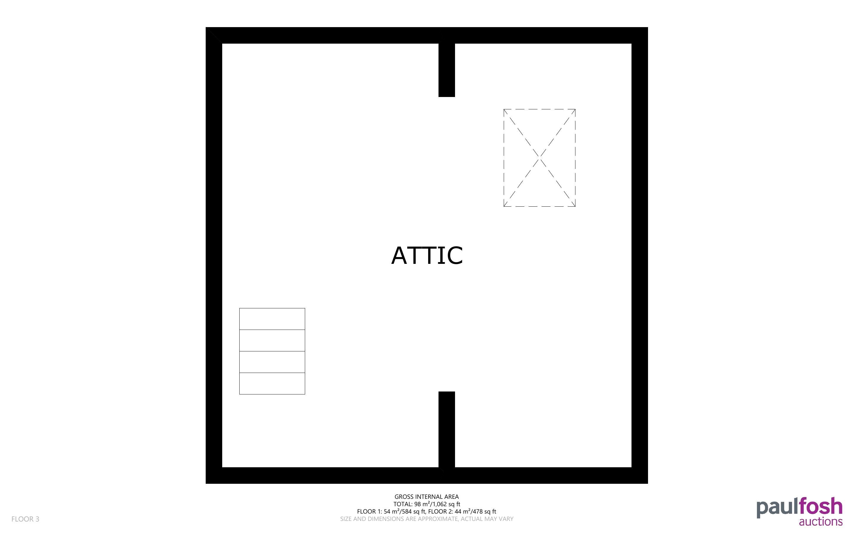 Attic: Large attic room that needs converting with stair case
