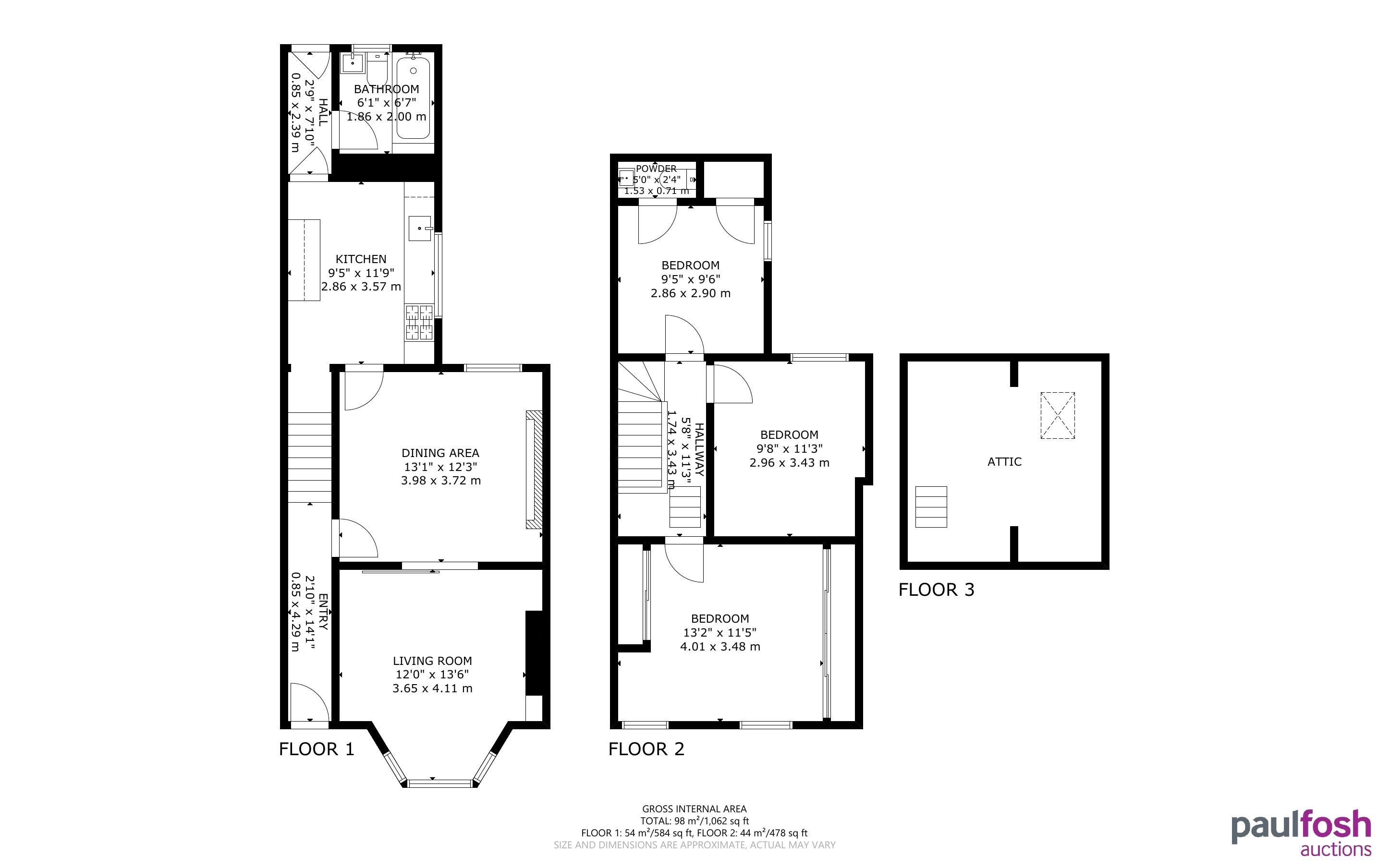 A three bed single bay fronted Victorian property in need of full refurbishment offering huge amounts of potential, set over three floors the property consists of entrance hallway, a large 2 in 1 reception area, with kitchen and bathroom to the ground floor. The first floor offers three bedrooms and a large attic room to the top floor, with a stair case added, can be turned into bedroom (Subject to necessary planning permission). The property benefits further from double glazing, gas central heating, (not tested), enclosed rear garden and storage area.