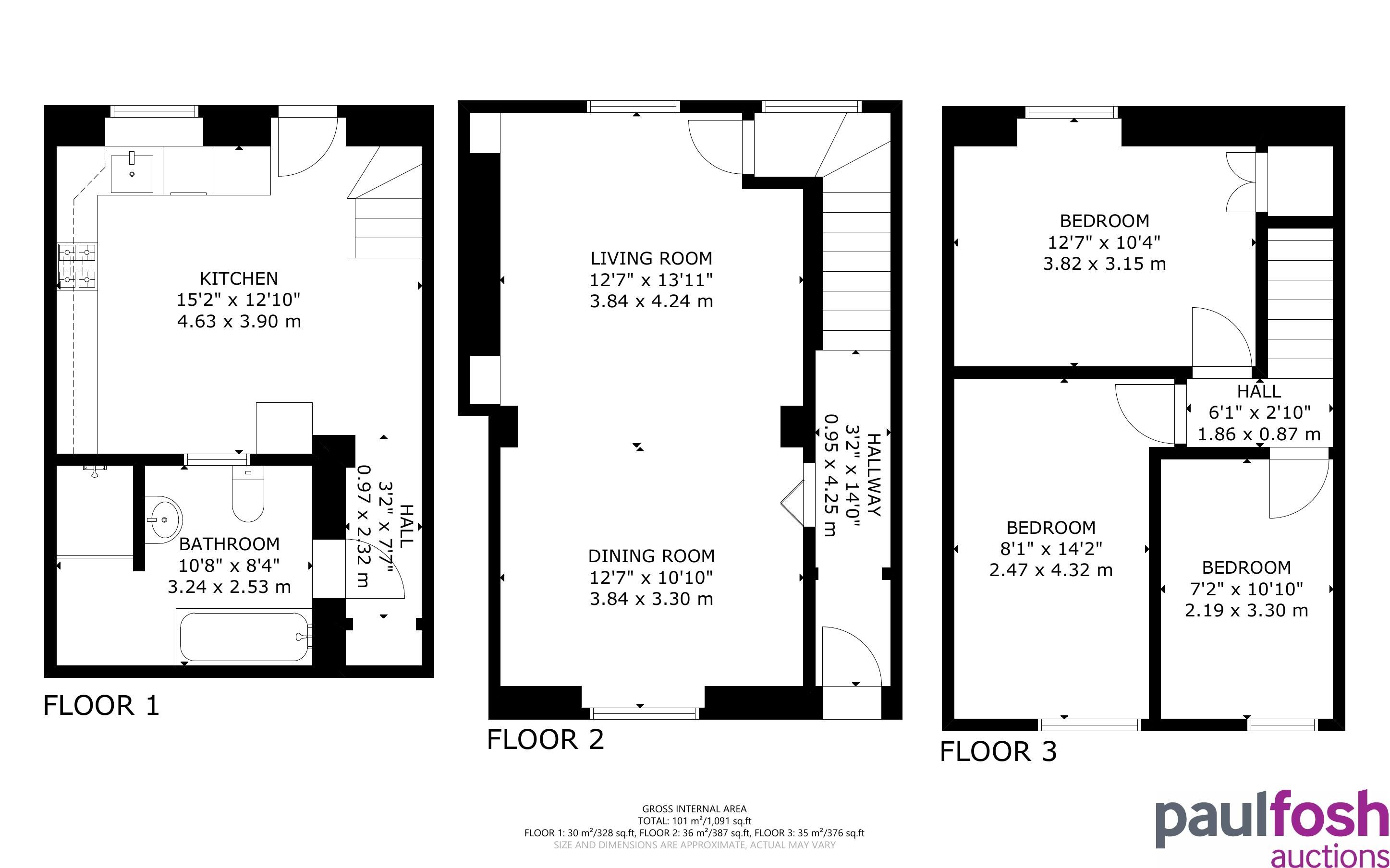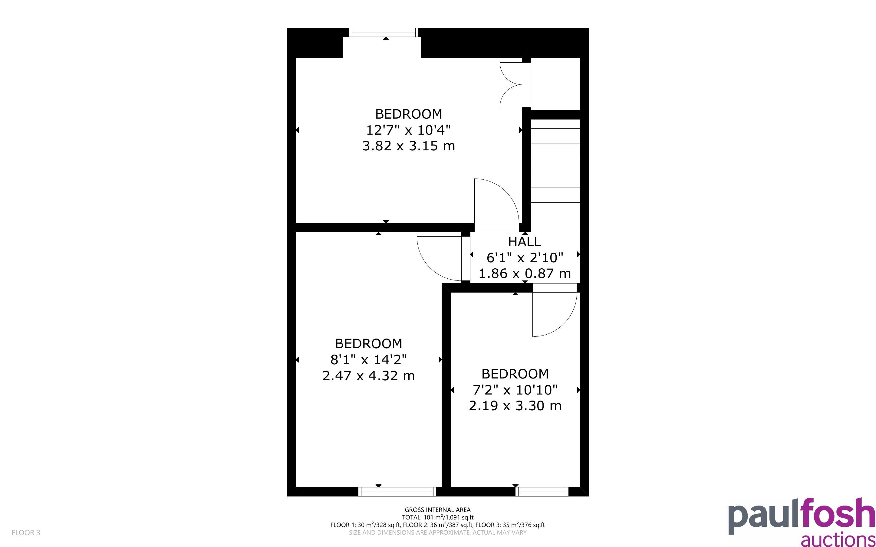 First Floor: Landing, 3 bedrooms