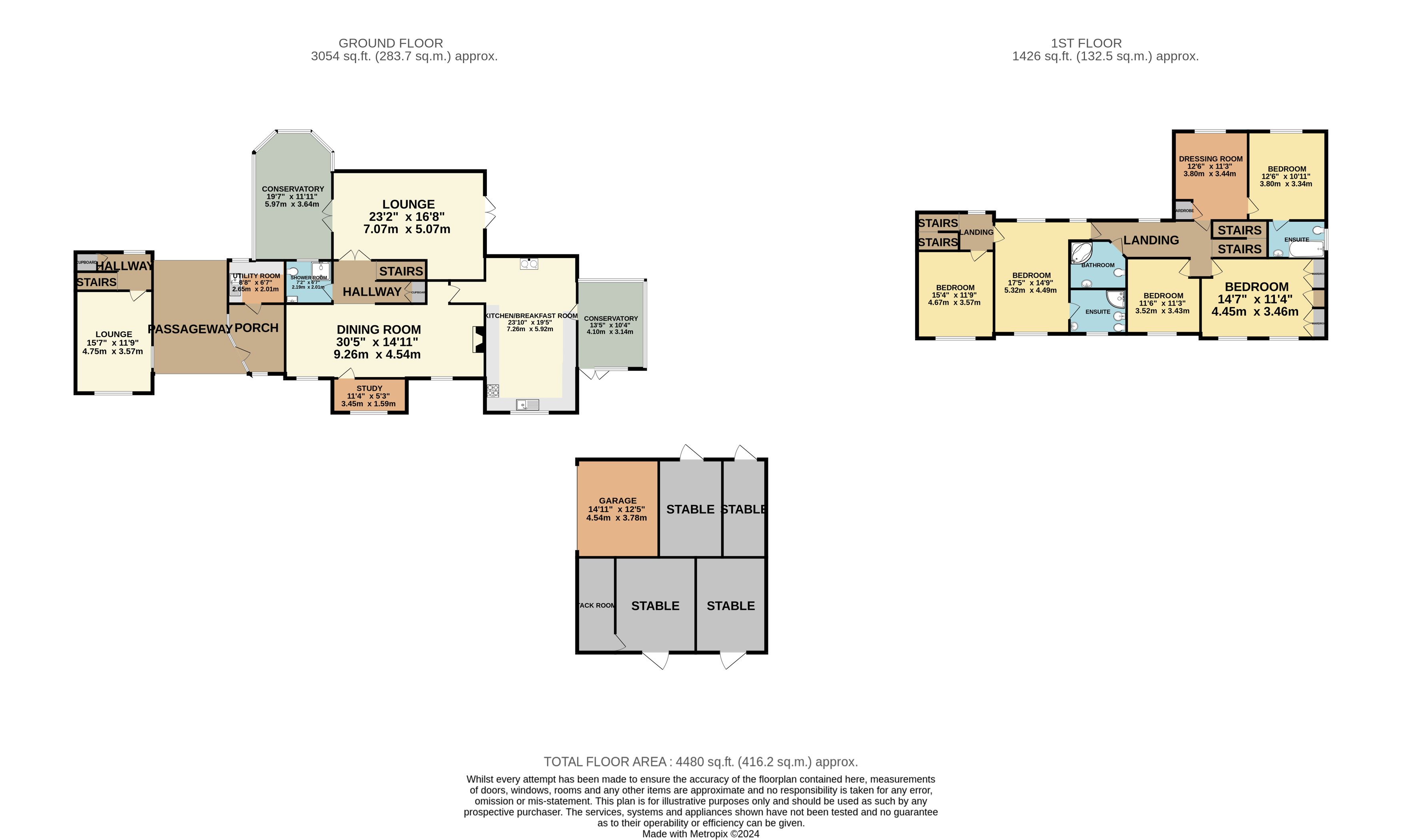 Ground Floor: Entrance porch, utility, dining room, study, lounge, kitchen/breakfast room, conservatory & further lounge (possible bed 6), shower/toilet facility