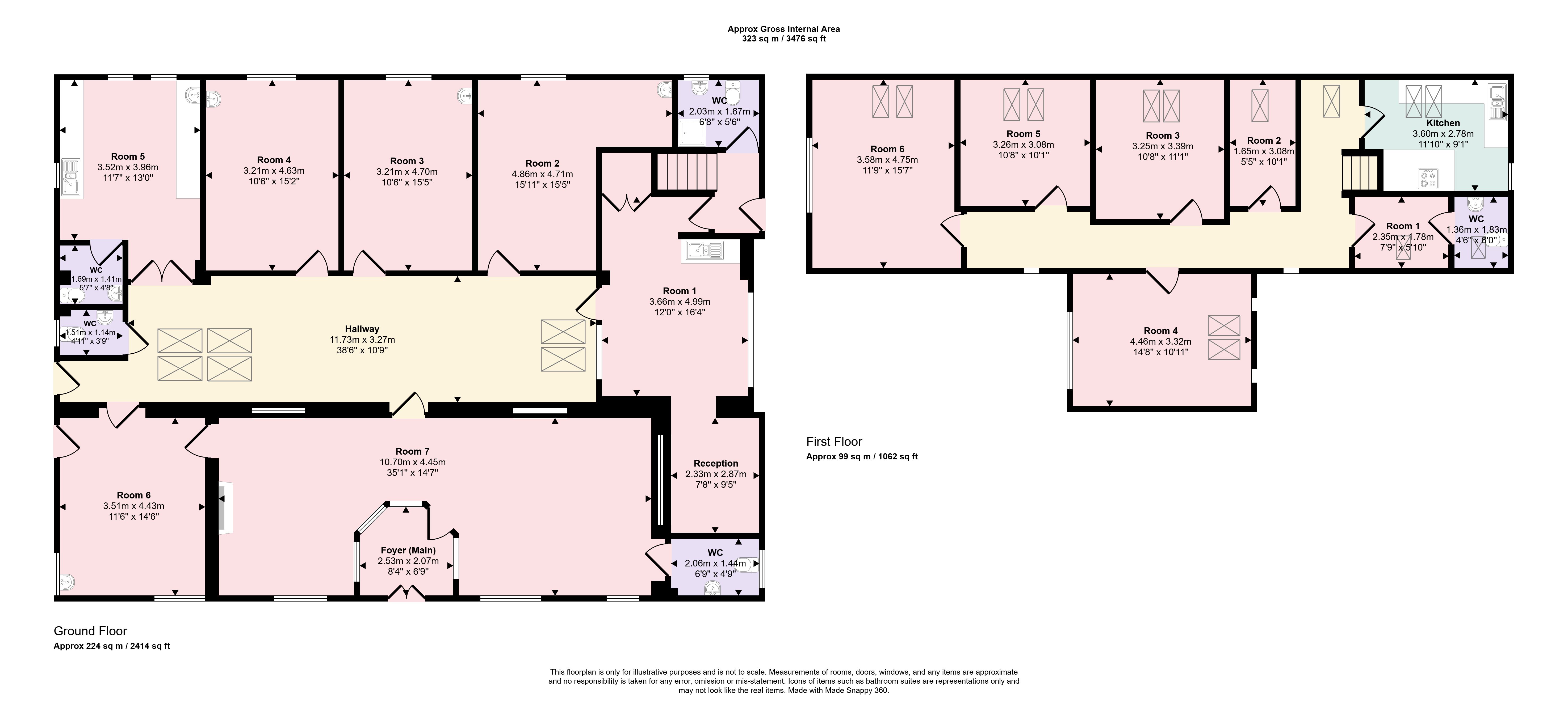 Ground Floor: Reception area/foyer, 6 treatment rooms, 4 WC's