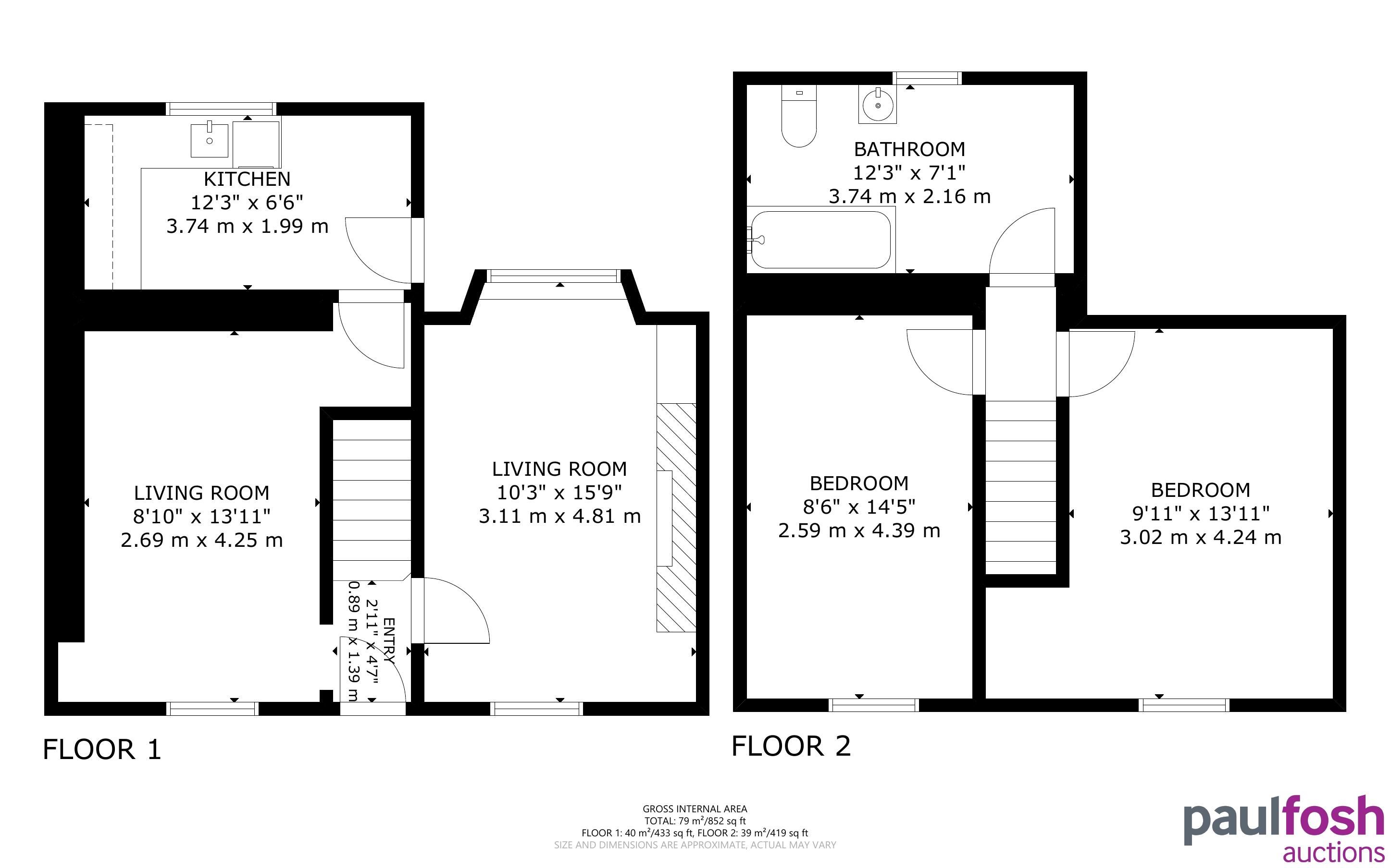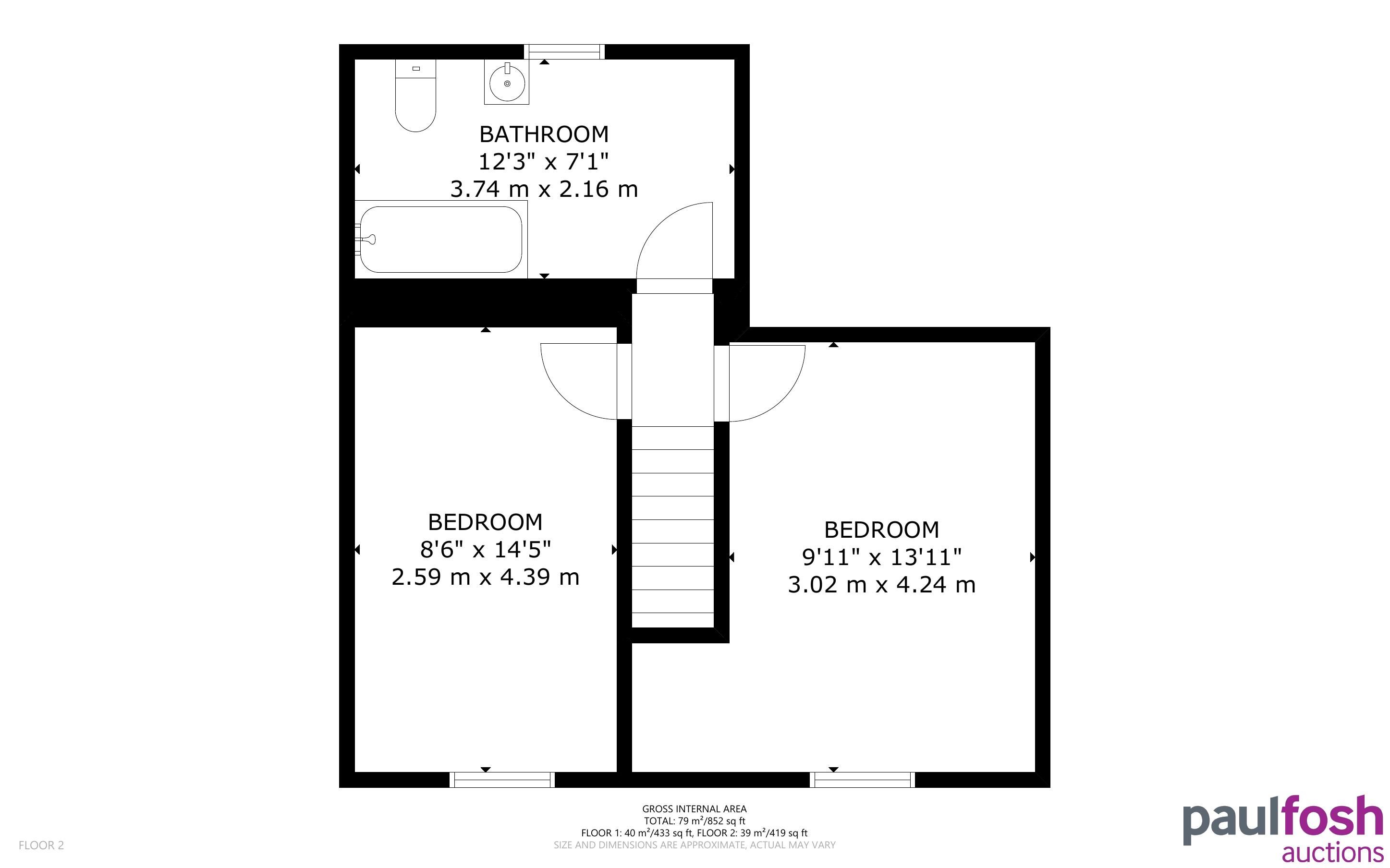 First Floor: 2 bedrooms, bathroom