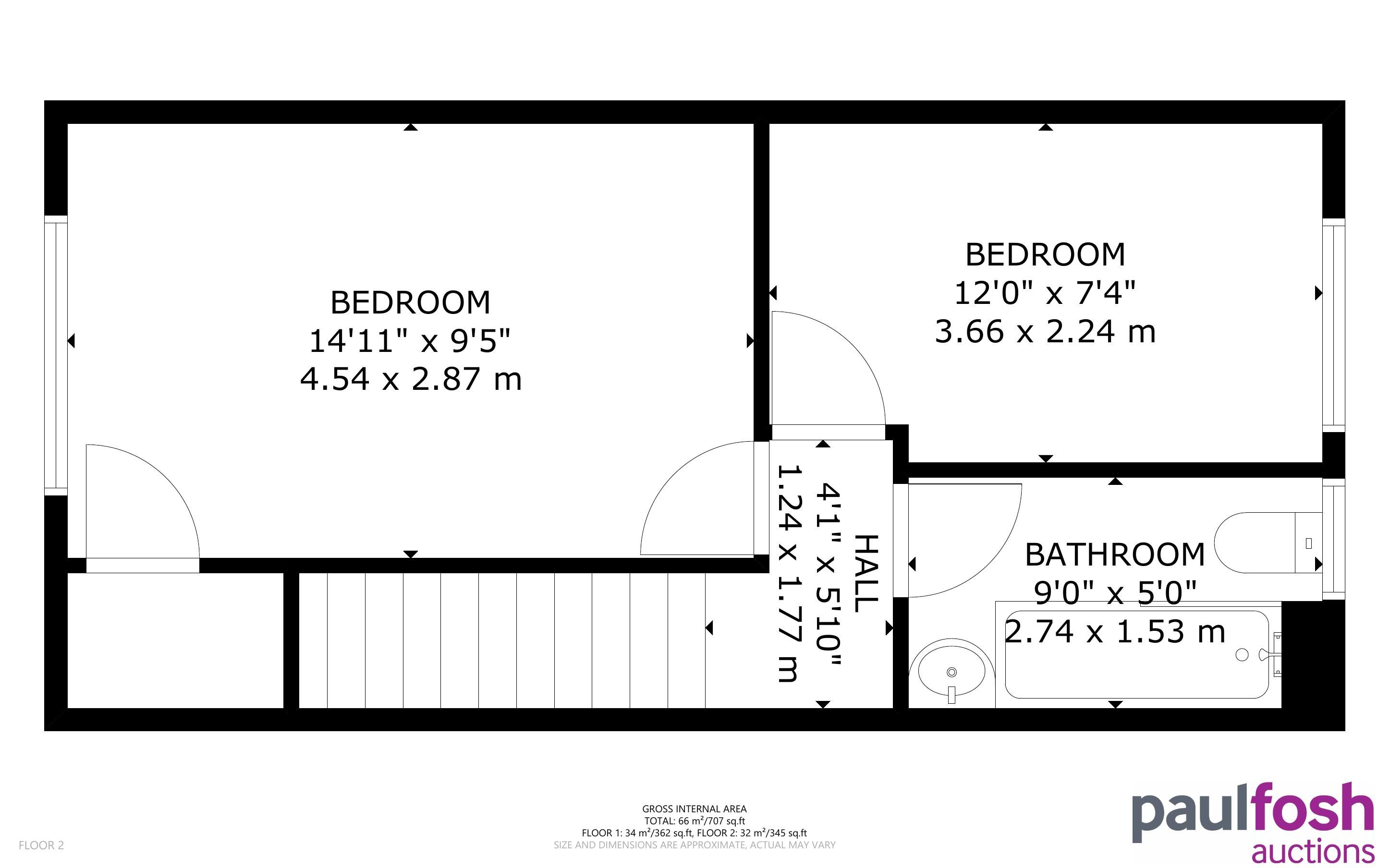 First Floor: Two bedrooms, bathroom