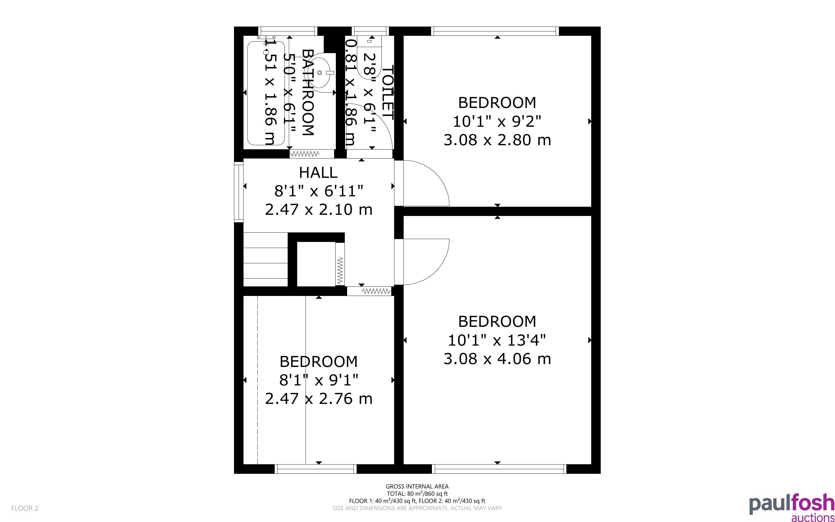 First Floor: Landing, 3 bedrooms, bathroom