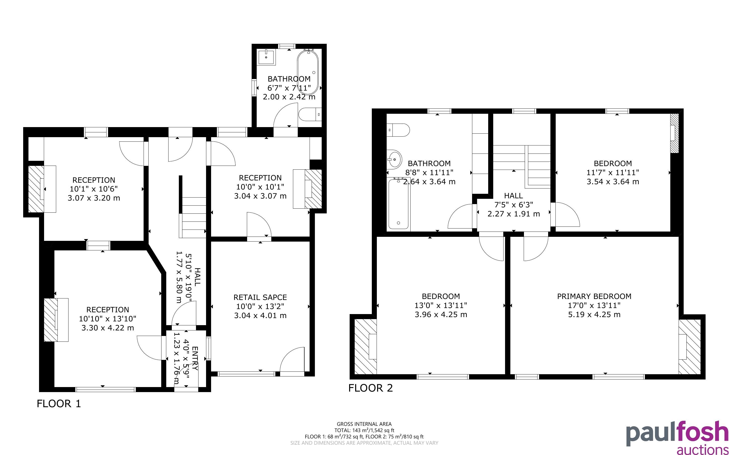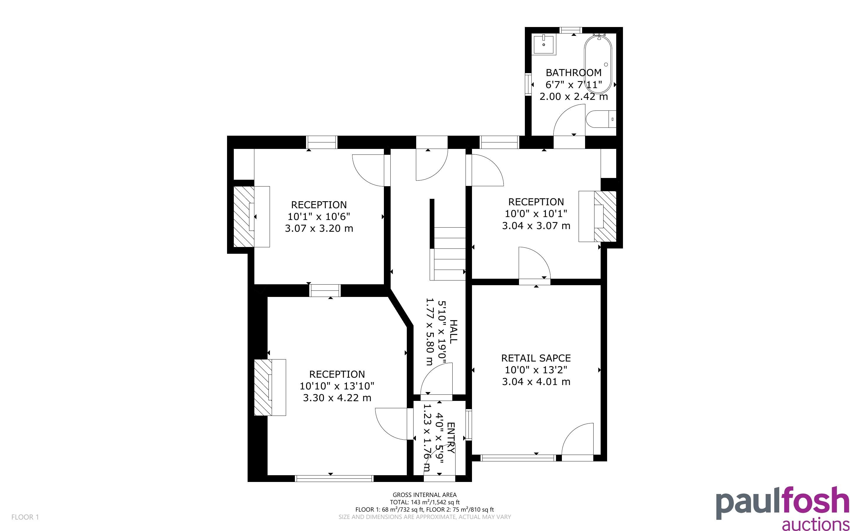 Ground Floor: Entrance, 3 receptions, bathroom and lean to and former shop area