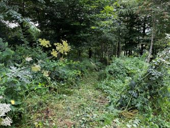 Easy access off the lane, along the section of track included in the sale to the metal gate installed 3 years ago. The site includes a short stretch of stream running alongside the track, providing water on-site.