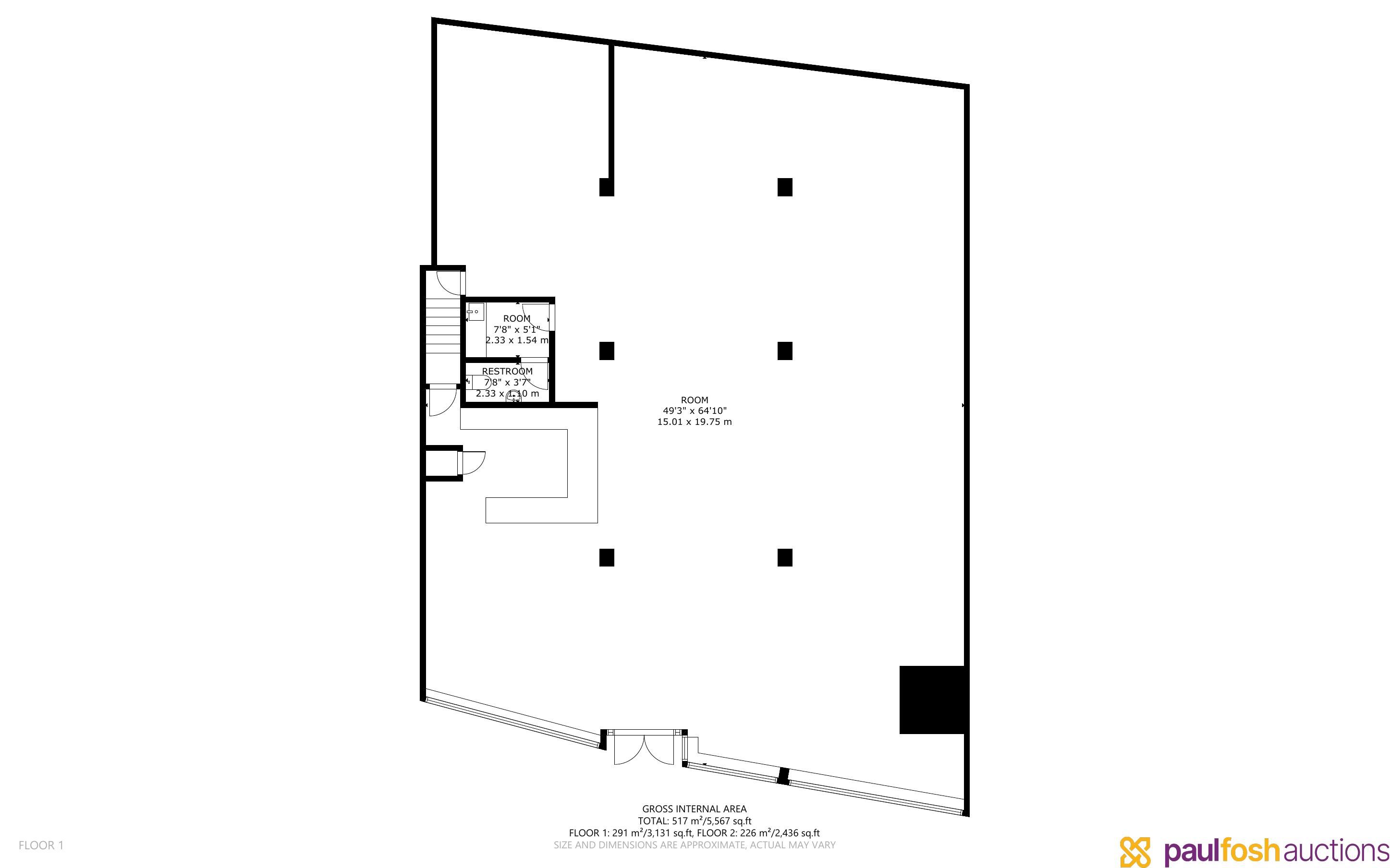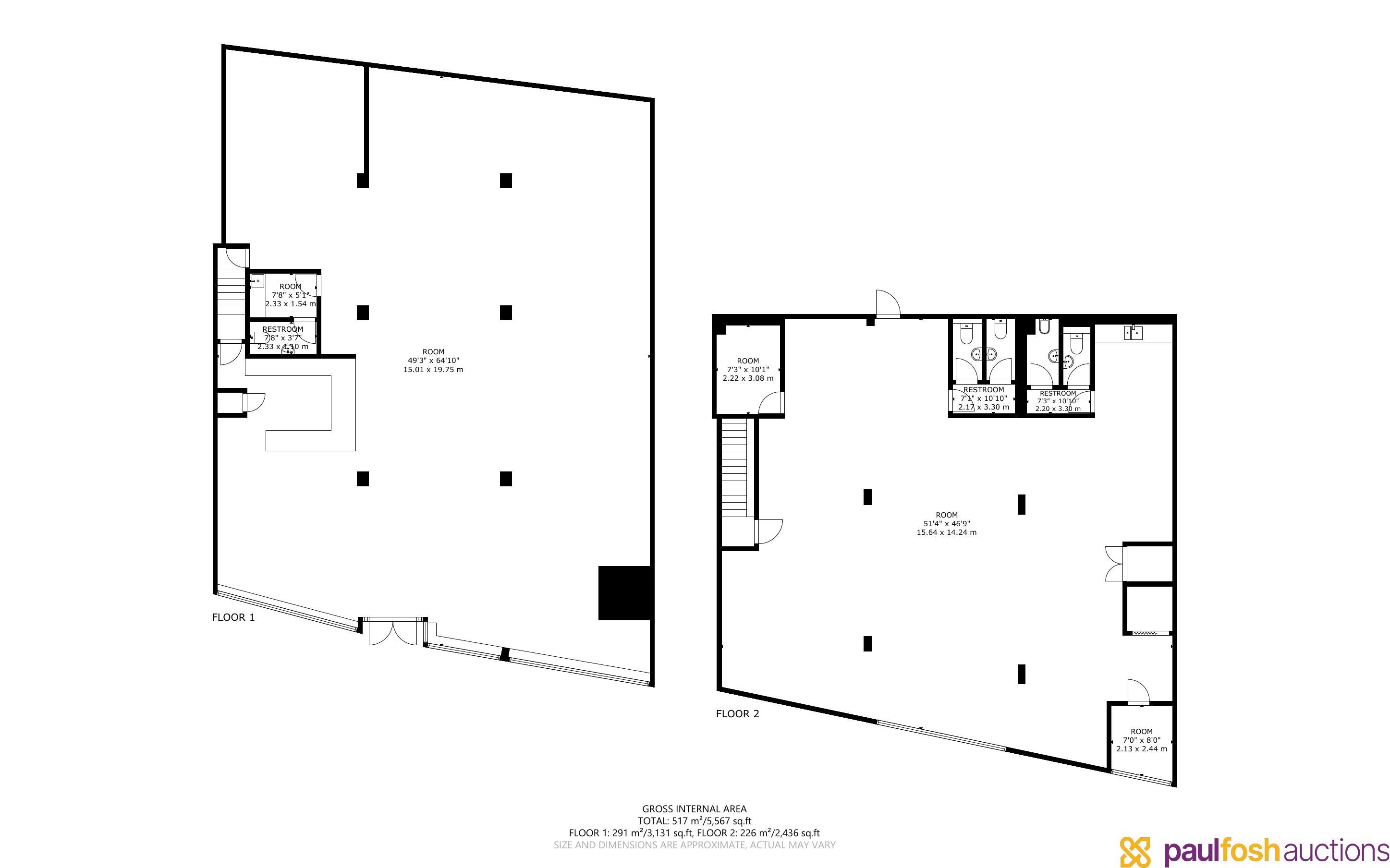 The property comprises a two-storey building with a large retail area at ground floor level and storage/ancillary at first floor occupying a prominent roadside position.
